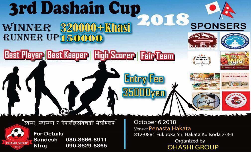 काठमाडौं (हाम्रो खेलकुद)– जापानको फुकुओकमा नेपाली समुदायबीच तेस्रो दशैं कप फुटसल प्रतियोगिता आयोजना हुने भएको छ । ओहासी ग्रुपले विदेशी भूमिमा रहेका नेपालीबीच आपसी मेलमिलाप र भाइचार अभिबृद्धिका लागि प्रतियोगिता आयोजना गरिएको आयोजकले जनाएको छ । प्रतियोगिता शनिबार फुकुओक सी हकता कु इसोदाको पेनास्ता हकता खेल मैदानमा हुनेछ । एक दिने प्रतियोगितामा २० टोलीको सहभागिता […]