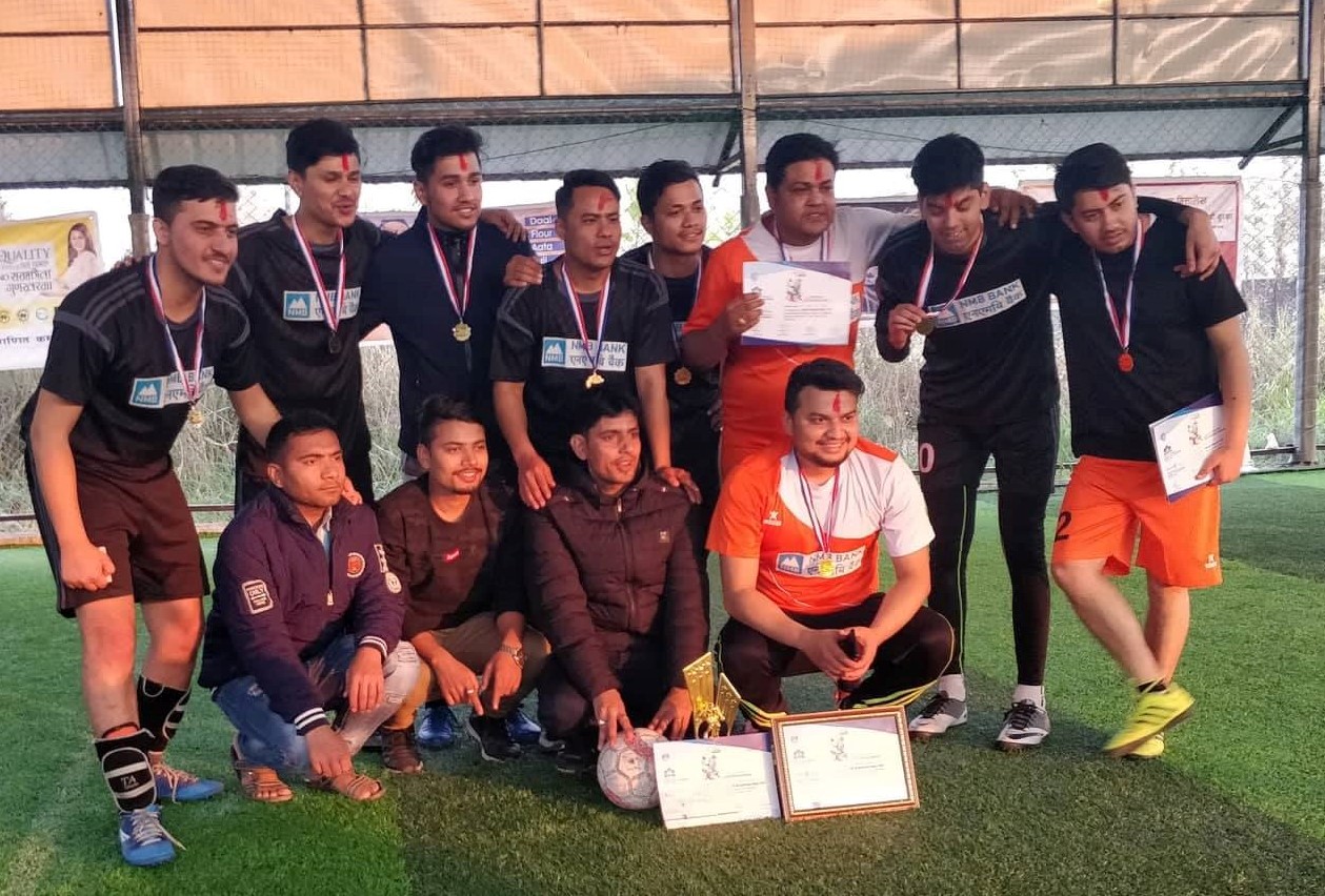 दिपक न्यौपाने, बुटवल एनएमबी बैंकले चौथो एमजी कप कर्पोरेट फुटसल प्रतियोगिता–२०७५को उपाधि जितेको छ । रोटरी क्लब अफ रुपन्देही र रोट्रयाक्ट क्लब अफ रुपन्देहीको संयुक्त आयोजना तथा युनिक फुटसलको प्राविधिक सहयोगमा शनिबार सम्पन्न खेलमा फाइनलमा मेगा बैंकलाई पराजित गर्दै एनएमबी बैंकले उपाधि जितेको हो । उपाधिसँगै एनएमबीले नगद १५ हजार सहित प्रमाणपत्र,शिल्ड र मेडल प्राप्त […]