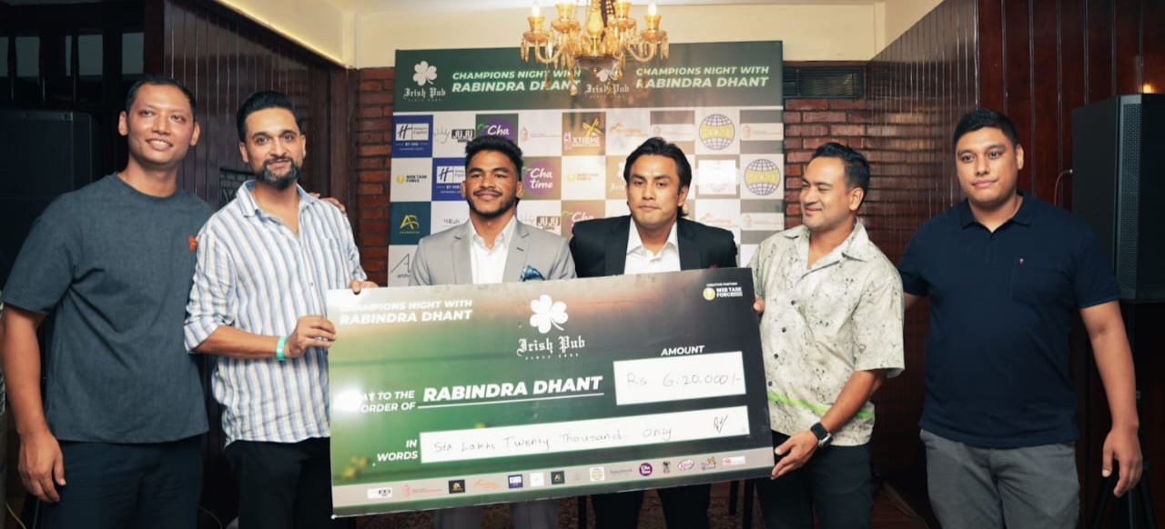 काठमाडौं (हाम्रो खेलकुद)- लाजिम्पाटस्थित आयरिश पबले शनिवार ‘च्याम्पियन्स नाइट’ आयोजना गर्दै भारतीय म्याट्रिक्स फाइट नाइट (एमएफएन) को मुख्य प्रतिस्पर्धाको उपाधि जितेका एमएमए खेलाडी रविन्द्र ढाँटलाई सम्मान गरेको छ। कार्यक्रमको सुरुवात रविन्द्रसँग आमन्त्रित र उनका समर्थकसँग ‘मिट एण्ड ग्रिट’ बाट भएको थियो । त्यसपछि सर्व साधारणलाई खुला रुपमा भेटको व्यवस्थापन गरिएको थियो। आयरिश पबले उनको खेल […]