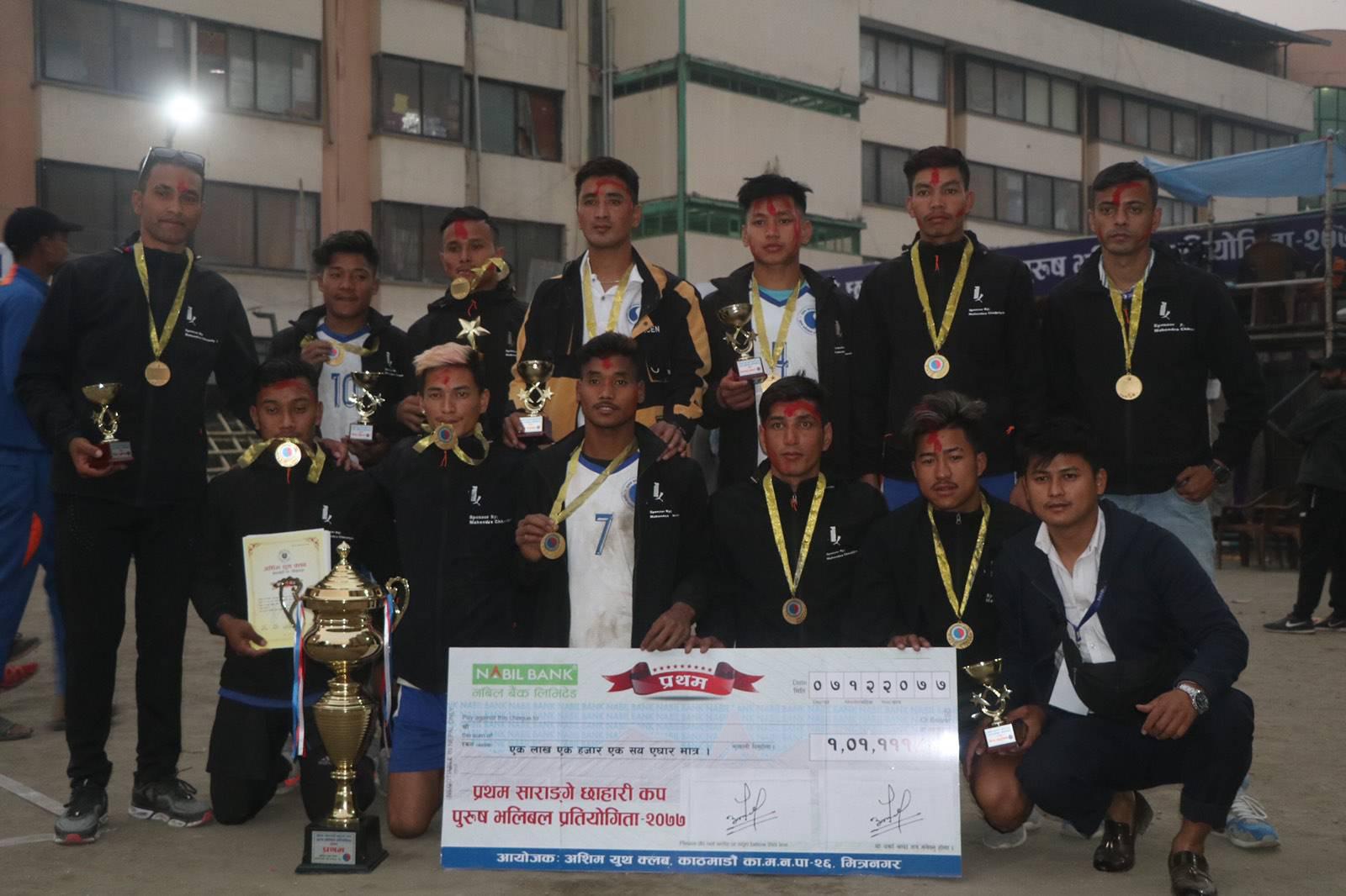 काठमाडौं (हाम्रो खेलकुद) – आयोजक अशिम युथ क्लबको रातो टोली प्रथम साराङ्गे छहारी कप पुरुष भलिबल प्रतियोगिताको च्याम्पियन बनेको छ । नयाँ बसपार्कस्थित ढोरपाटन स्पोर्ट्स क्लबको खेल मैदानमा सोमबार फाइनलमा गल्कोट बाग्लुङलाई ३–१ को सेटमा पराजित गर्दै आयोजक रातोले उपाधि जितेको हो । प्रतिस्पर्धात्मक पहिलो सेट ३७–३९ ले गुमाएपनि त्यसपछिको तीनै सेट आयोजकले आफ्नो पक्षमा […]