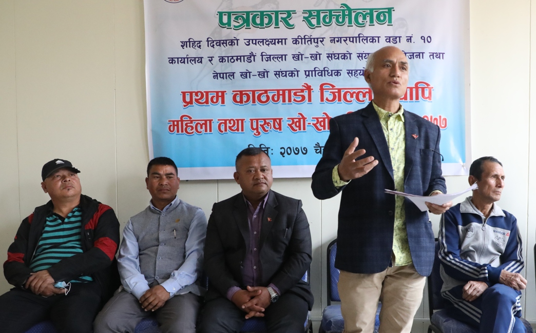काठमाडौं (हाम्रो खेलकुद) – काठमाडौं जिल्ला खो खो संघ र कीर्तिपुर नगरपालिका वडा १० कार्यालयको संयुक्त आयोजनामा प्रथम काठमाडौं जिल्लाव्यापी अन्तरकलेज खो खो प्रतियोगिता चैत २० गतेदेखि हुने भएको छ । प्रतियोगितामा छात्र÷छात्रामा समान ५–५ गरी १० टिमको सहभागिता रहने मंगलबार कीर्तिपुरमा आयोजित पत्रकार सम्मेलनमा नेपाल खो खो संघका कार्यवाहक अध्यक्ष प्रदीप महर्जनले जानकारी दिए […]