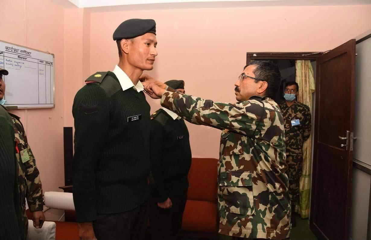 काठमाडौं (हाम्रो खेलकद) – नेपाली राष्ट्रिय पुरुष भलिबल टिमका महत्वपुर्ण सदस्य धन बहादुर भट्ट नेपाली सेनाको जमदार पदमा बढुवा भएका छन् । त्रिभुवन आर्मी क्लबका महत्वपुर्ण स्पाइकर समेत रहेका धन बहादुर हवल्दारबाट जमदारमा बढुवा भएका हुन् । धनलाई सेनाका प्राविधिक महासेनानी किशोर कुमार श्रेष्ठले दर्जान्ही चिन्ह प्रदान गरेका थिए । २०७२ देखि राष्ट्रिय टोलीमा नियमित […]
