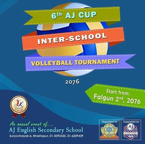 काठमाडौं (हाम्रो खेलकुद) – आदर्श ज्योति (एजे) सेकेण्डरी स्कुलको आयोजनामा छैटौं संस्करणको एजे भलिबल कप अन्तरविद्यालय छात्र/छात्रा भलिबल प्रतियोगिता अर्काे महिना आयोजना हुने भएको छ । भक्तपुर सूर्यवनायकस्थित एजे स्कुलको कोर्टमा प्रतियोगिता फागुन २ गतेबाट हुने विद्यालयका प्रधानाध्यापक कृष्णराम दुवालले जानकारी गराए । प्रतियोगितमा कक्षा १२ मा अध्ययनरत विद्यार्थीले सहभागिता जनाउन पाउने छ । […]