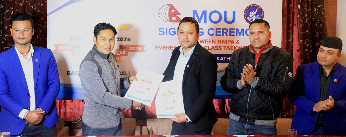 काठमाडौं (हाम्रो खेलकुद) – नेपाल राष्ट्रिय तथा अन्तराष्ट्रिय खेलाडी संघ (एनएनआइपिए) र एभरेष्ट वल्र्ड क्लास तेक्वान्दो अमेरिकाबीच शुक्रबार ५ वर्षे सम्झौता भएको छ । संघका अध्यक्ष दीपक श्रेष्ठ र एभरेष्ट वल्र्डका तर्फबाट नेपाल च्याप्टरका उपाध्यक्ष बलराम कार्कीले सम्झौता पत्रमा हस्ताक्षर गरे । सम्झौता अनुसार नेपाल राष्ट्रिय तथा अन्तराष्ट्रिय खेलाडी संघका पूर्व महासचिव एवं एभरेष्ट वल्र्ड […]