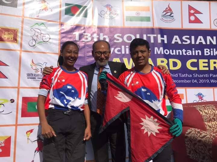 काठमाडौं (हाम्रोृ खेलकुद) १३औं साग अन्तरगत साइक्लिङमा नेपालका राजेश मगर र निश्मा श्रेष्ठले स्वर्ण जितेका छन् । गोकर्णमा बुधबार साइक्लिङअन्तर्गत डाउनहिलको १ किलोमिटर इलेभेसन ड्रप ५५ मिटर दूरीमा महिला र पुरुष गरी नेपालले २ स्वर्ण जितेका हुन्। नेपालका लागि पुरुषतर्फ राजेश मगर र महिलातर्फ निश्मा श्रेष्ठले स्वर्ण जिते । राजेशले निर्धारित दूरी १ मिनेट ४९.३३ […]