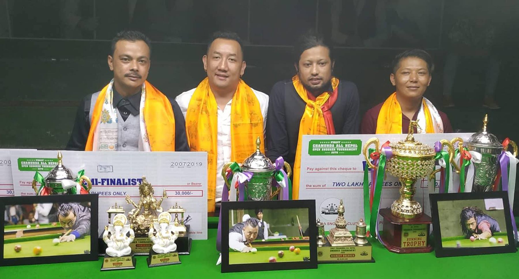 काठमाडौं (हाम्रो खेलकुद) – रेगन श्रेष्ठ सर्वाधिक धनराशिको ‘प्रथम चामुन्डा अल नेपाल स्नुकर च्याम्पियनसिप’को च्याम्पियन बनेका छन् । बौद्धस्थित चामुन्डा स्पोर्टस् क्लबको स्नुकर हाउसमा शनिबार भएको फाइनलमा रेगनले राजेन लामालाई ७–४ को फ्रेममा पराजित गर्दै च्याम्पियन बन्न सफल भएको हो । उपाधिसँगै रेगनले २ लाख रुपैया हात पा¥यो । दोस्रो भएको राजेनले ७५ हजार रुपैयामा […]