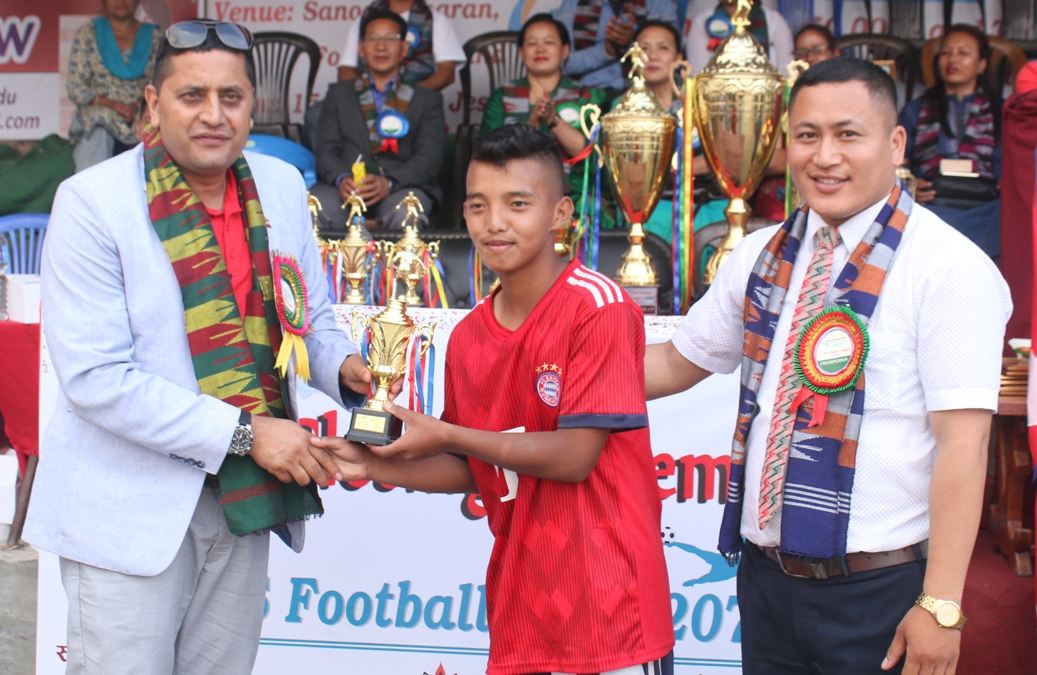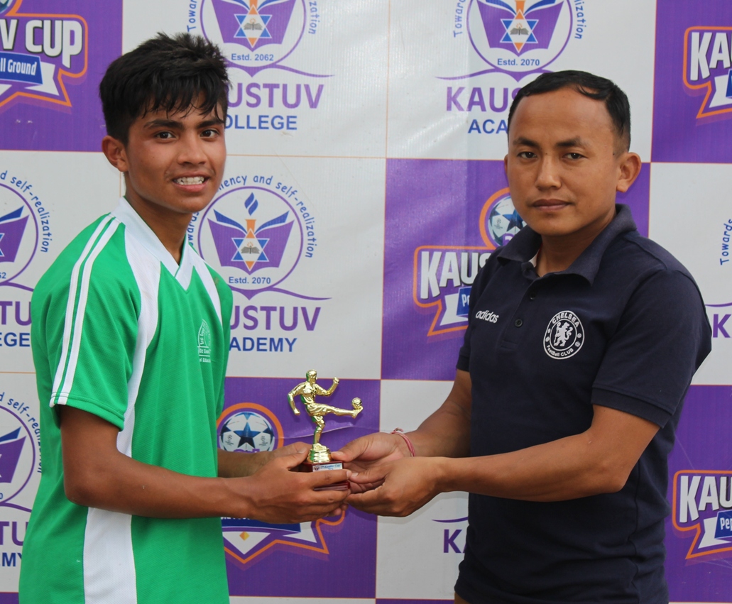 काठमाडौं (हाम्रो खेलकुद) – पिस प्वाइन्टले प्रथम केभीएस कप अन्तरविद्यालय छात्र फुटबल प्रतियोगिताको उपाधि शनिबार जितेको छ । सानोगौचरणमा भएको फाइनलमा पिस प्वाइन्टले प्राक्सिस्लाई ३–१ गोलले पराजित ग¥यो । विजयी टिमका लागि गौरव महर्जन, विकास साउद र कुशल थापा मगरले गोल गरे । प्राक्सिस्का लाक्पा लामाले सान्त्वना गोल फर्काए । प्राक्सिस्का पेम्बा शेर्पा ‘म्यान अफ […]