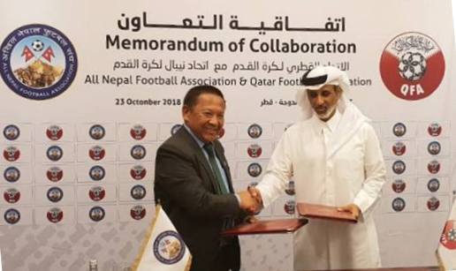 काठमाडौं (हाम्रो खेलकुद) – अखिल नेपाल फुटबल संघ (एन्फा) र कतार फुटबल एसोसिएसन (क्युएफए) ले दुवै देशको फुटबल बिकासका लागि बुधबार पाँच वर्षको लागि सम्झौता गरेको छ । कतार फुटबल एसोसिएसनको मुख्यालय दोहामा एन्फाका अध्यक्ष कर्मा छिरिङ शेर्पा र क्युएफएका अध्यक्ष हमाद बिन खालिफा बिन अहमेद अल तानीले सम्झौता पत्रमा हस्ताक्षर गरेका हुन् । सम्झौतामा […]