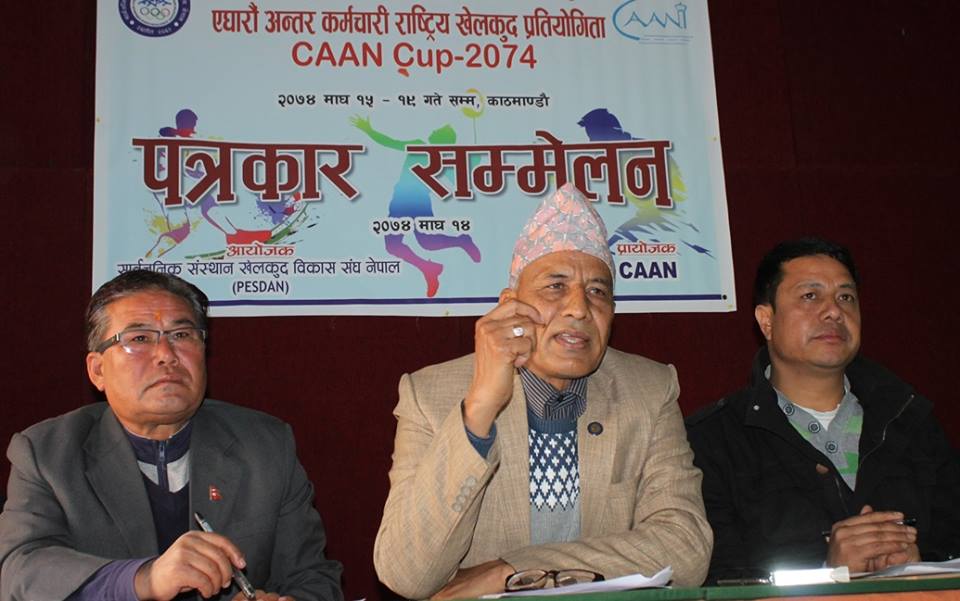 काठमाडौं (हाम्रो खेलकुद) – सार्वजनिक संस्थान खेलकुद विकास संघ, नेपालको आयोजनामा ११ औं अन्तर कर्मचारी राष्ट्रिय खेलकुद प्रतियोगिता– क्यान कपमा तीन खेलमा प्रतिस्पर्धा हुने भएको छ । क्यान कपमा टेबलटेनिस, ब्याडमिन्ट र फुटसलमा प्रतिस्पर्धा हुने आइतबार आयोजित पत्रकार सम्मेलनमा आयोजक संघका अध्यक्ष कुलबहादुर आचार्यले जानकारी गराए । प्रतियोगिता अन्तर्गत तीनदिने टेबलटेनिस सोमबारदेखि लैनचौरस्थित राष्ट्रिय टेबलटेनिस […]