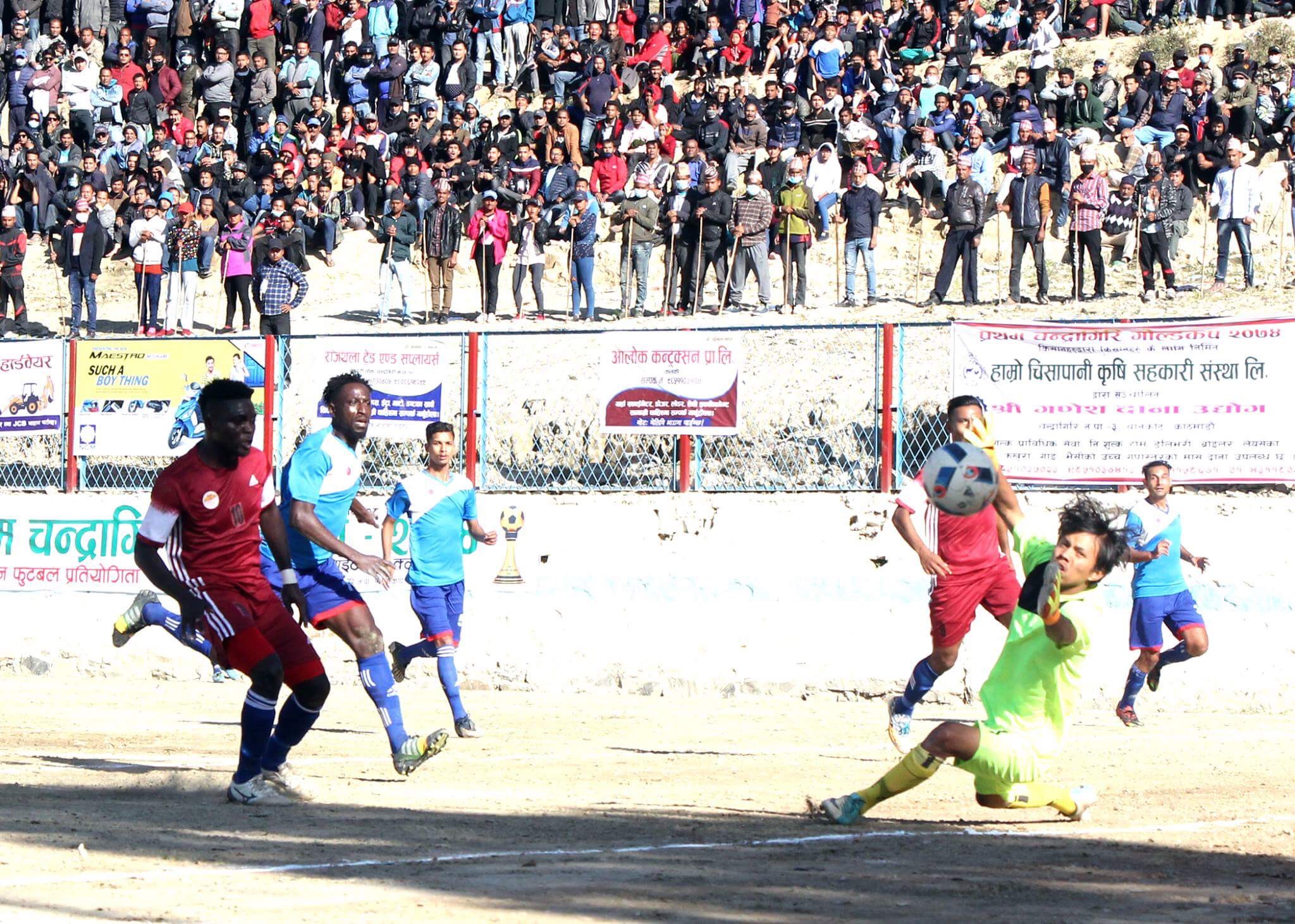 काठमाडौं (हाम्रो खेलकुद)– फ्रेण्डस् क्लब राजधानीमा जारी प्रथम चन्द्रागिरी गोल्डकप फुटबल प्रतियोगिताको फाइनल पुगेको छ । चन्द्रागिरी नगरपालिकाको नैकाप मैदानमा आज भएको सेमिफाइनल सिएमजी क्लब संकटा १–० ले हराउँदै अन्तिम दुई मा पुगेको हो । ७० औं मिनेट सियुङले फ्रिकिकमार्फत गरेको गाेल नै खेलको निर्णय बनेको थियो । नेपाल जनरल मार्केट (हिरो) को मुख्य प्रायोजन, […]