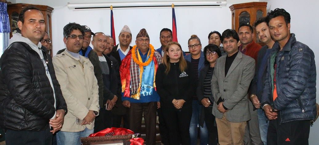 काठमाडौं (हाम्रो खेलकुद) – नेकपा एमालेका अध्यक्ष केपी शर्मा ओलीलाई खेलाडी र खेल कर्मीले बालकोटस्थित निवासमा बिहीबार भेट गरी बधाइ दिएका छन् । मंसिर १० र २१ गते दुई चरणमा भएको प्रतिनिधि र प्रदेश सभा निर्वाचनमा एमाले सबै भन्दा ठूलो पार्टी बनेको थियो । अध्यक्ष ओली झापा क्षेत्र नं ५ बाट प्रतिनिधि सभा सदस्यमा निर्वाचित […]