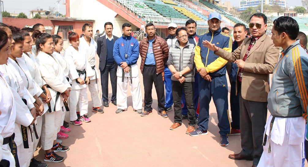 काठमाडौँ (हाम्रो खेलकुद) – राष्ट्रिय खेलकुद परिषद् (राखेप) का सदस्य सचिव केशवकुमार विष्टले राष्ट्रिय टिम तयारीमा रहेका खेलाडीहरुसंग मंगलबार भेट गरेका छन्। सम्बन्धित खेलका मुख्य प्रशिक्षक, राष्ट्रिय टिम तयारीका प्रशिक्षकलगायतको उपस्थितिमा त्रिपुरेश्वरस्थित दशरथ रंगशालामा खेलाडीलाई भेट गरी तालिमका विषयमा सदस्य–सचिव विष्टले जानकारी लिएका थिए। सो अवसरमा सदस्य–सचिव विष्टले खेलाडीलाई अनुशासनमा विशेष ध्यान दिन सुझाउदै खेल […]