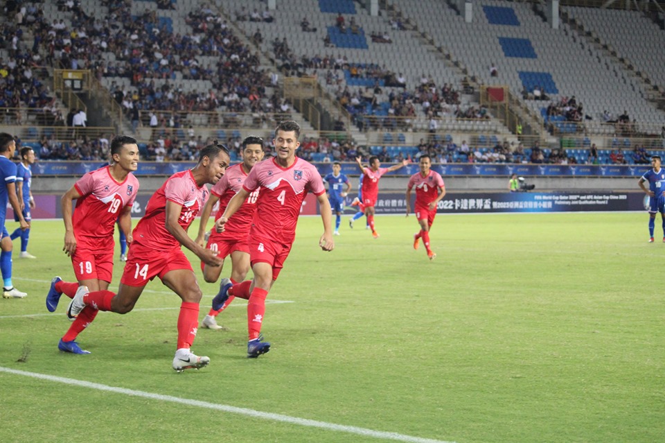 काठमाडौं (हाम्रो खेलकुद)– नेपाली राष्ट्रिय फुटबल टोलीले विश्व कप छनोट अन्तर्गत चाइनिज ताइपेविरुद्ध पहिलो हाफमा अग्रता लिएको छ । पहिलो हाफको समाप्तीमा नेपाल १–० ले अगाडि रहेको छ । अन्जन विष्टको गोलमा नेपालले अग्रता लिएको थियो । पहिलो रोजाईमा मौका पाएका अन्जनले तेस्रो मिनेटमा प्राप्त फ्रिकिकलाई गोलमा परिणत गर्दै टोलीलाई अग्रता दिलाएका थिए । […]