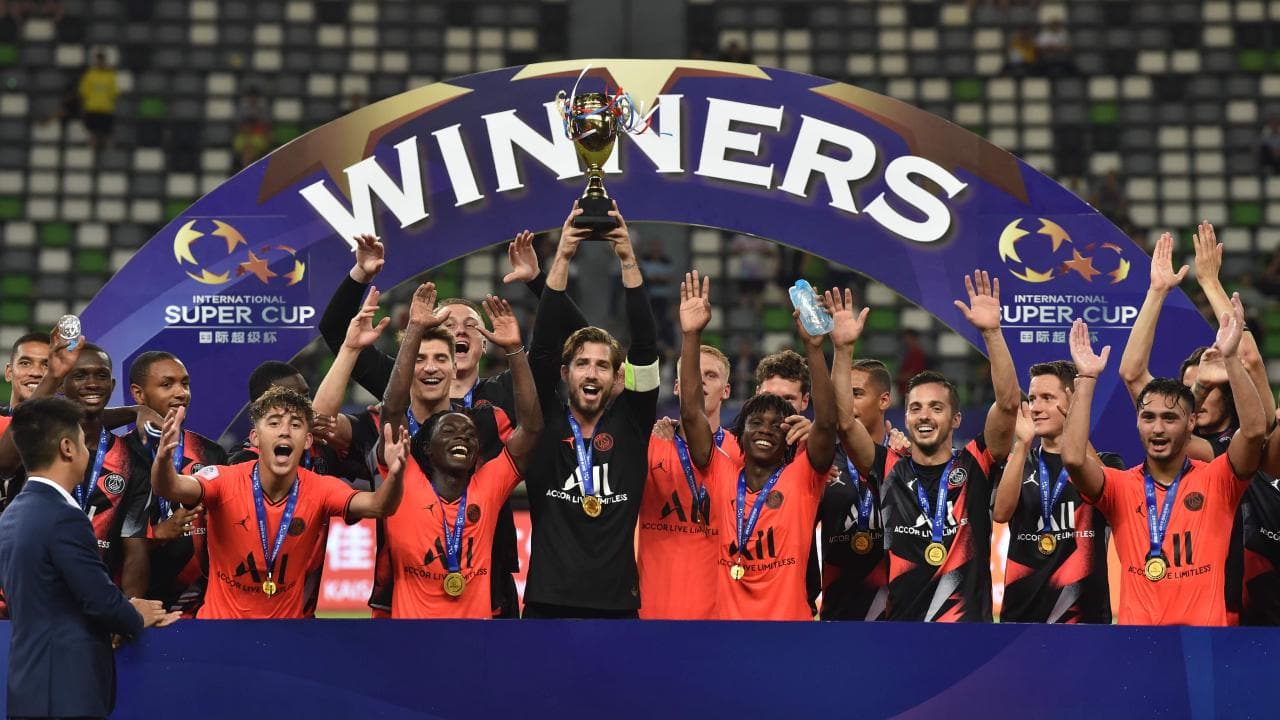 एजेन्सी – फ्रान्सेली लिग च्याम्पियन पेरिस सेन्ट जर्मेन (पीएसजी) ले अष्ट्रेलियन च्याम्पियन सिड्नी एफसीलाई पराजित गर्दै इन्टरनेसनल सुपर कपको उपाधि जितेको छ । चीनको सोझुमा भएको खेलमा पीएसजीले सिड्नीमाथि ३-० को जित दर्ता गरेको हो । ब्राजिलियन स्टार नेयामरबिना नै उत्रिएको पीएसजीले खेल अवधिभर आफ्नो दबदबा कायम राख्यो । खेलको ३८ औं मिनेटमा किलियन एम्बाप्पेले […]