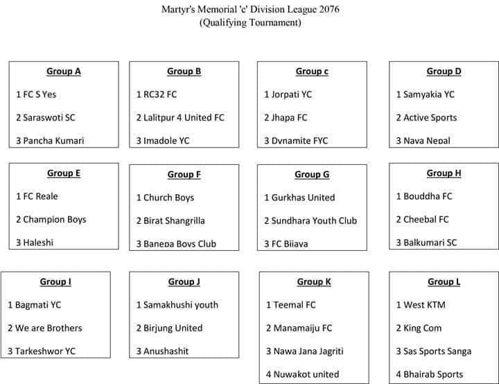 काठमाडौं (हाम्रो खेलकुद) – अखिल नेपाल फुटबल संघ (एन्फा) ले आयोजना गर्न लागेको सहिद स्मारक ‘सी’ डिभिजन लिगका लागि छनोटमा यसपटक ३८ टोलीले प्रतिस्पर्धा गर्ने भएका छन् । अखिल नेपाल फुटबल संघ एन्फाले आज सार्वजनिक गरेको खेल तालिका अनुसार आउदो ७ जेठबाट शुरु हुने छनोटमा मोफसलका १० टोलीसहित ३८ टोलीले प्रतिस्पर्धा गर्न लागेको एन्फाका लिग […]
