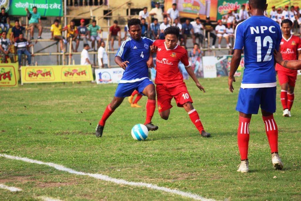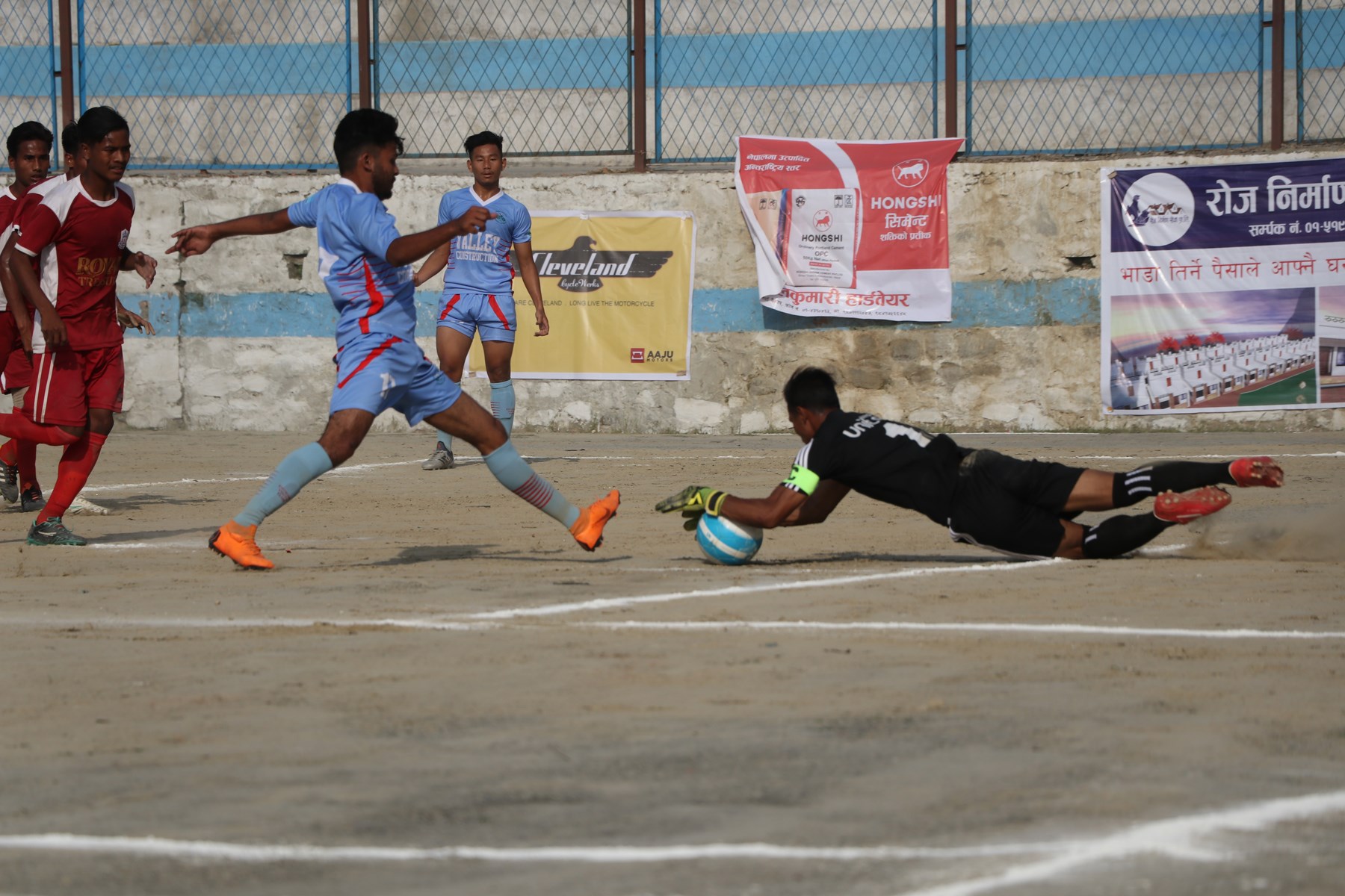 झापा (हाम्रो खेलकुद)– सिएमजी क्लब संकटालाई टाइब्रेकरमा हराउँदै नेपाल पुलिस क्लब काँकडभिट्टामा जारी मेचीनगर गोल्डकपको फाइनल पुगेको छ । निर्धारित समय १–१ को बराबरीमा टुंगिएपछि टाइब्रेकरमा पुलिस ४–३ ले विजयी भएको थियो । टाइब्रेकरमा पुलिसका परिवर्तित गोलकिपर रोशन खड्का नायक बने । उनले संकताका दुई पेनाल्टी रोके । टाइब्रेकरमा पुलिसका लागि अजित भण्डारी, भरत शाह, […]