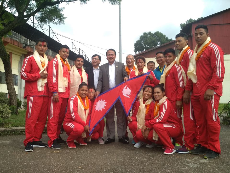 काठमाडौं (हाम्रो खेलकुद) – आसन्न जाकार्ता र पालेङवाङ एसियाडका लागि नेपाली जुडो टिमले हंगेरीमा विशेष प्रशिक्षण गर्ने भएको छ । विशेष प्रशिक्षणका लागि हंगेरी प्रस्थान गर्नुअघि नेपाली टोलीले थाइल्यान्डमा हुने थाइल्यान्ड इन्टरनेसनल जुडो नर्थ बैंकक युनिभर्सिटी च्याम्पियनसिपमा सहभागिता जनाउने छ । १० खेलाडी र ४ अफिसियलसहितको नेपाली टोली आजै थाइल्यान्ड प्रस्थान गरेको छ । टोलीलाई […]