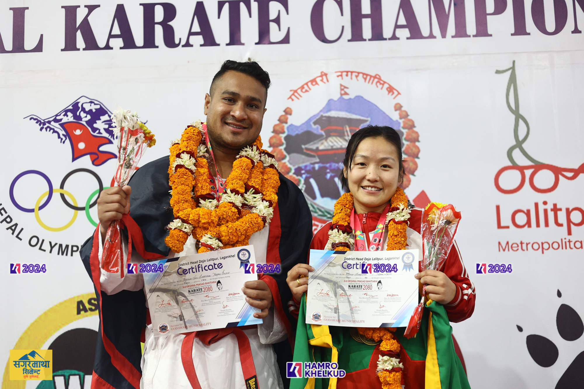 ललितपुर (हाम्रो खेलकुद)– नेपाल पुलिस क्लबका विप्लवलाल श्रेष्ठ र त्रिभुवन आर्मी क्लबकी मिस्ली श्रेष्ठले कृष्णप्रसाद भट्टराई स्मृति राष्ट्रिय कराते प्रतियोगितामा ह्याट्रिक गरेका छन् । लगातार तीन वर्षदेखि आयोजना भएको प्रतियोगिताको तीनै संस्करणमा लगातार स्वर्ण पदक जित्ने पुरुषतर्फ विप्लवलाल र महिलातर्फ मिस्ली एक्लो खेलाडी हुन् । विप्लवले लगातार तेस्रो पटक नै कुमुते पुरुष ८४ केजी माथि […]