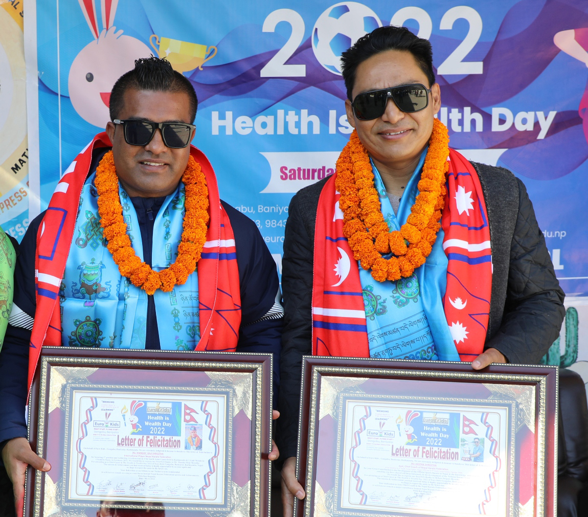 काठमाडौं (हाम्रो खेलकुद) – युरो किड्स, गोंगबु/काठमाडौं युरो स्कुलले दक्षिण एसियाली खेलकुद (साग) का दोहोरो स्वर्ण विजेता करातेका दीपक श्रेष्ठ र मन्डेकाजी श्रेष्ठलाई शुक्रबार नगदसहित सम्मान गरेको छ । विद्यालयको वार्षिक खेलकुद सप्ताहका अवसरमा दुवैलाई सम्मान गरिएको हो । विद्यालयका अध्यक्ष प्रमोद पाण्डे, शैक्षिक निर्देशक डा. दीपक गुप्ता, निर्देशकहरु ज्ञानेन्द्रमान जोशी, राजाराम पुडासैनी र राजन […]