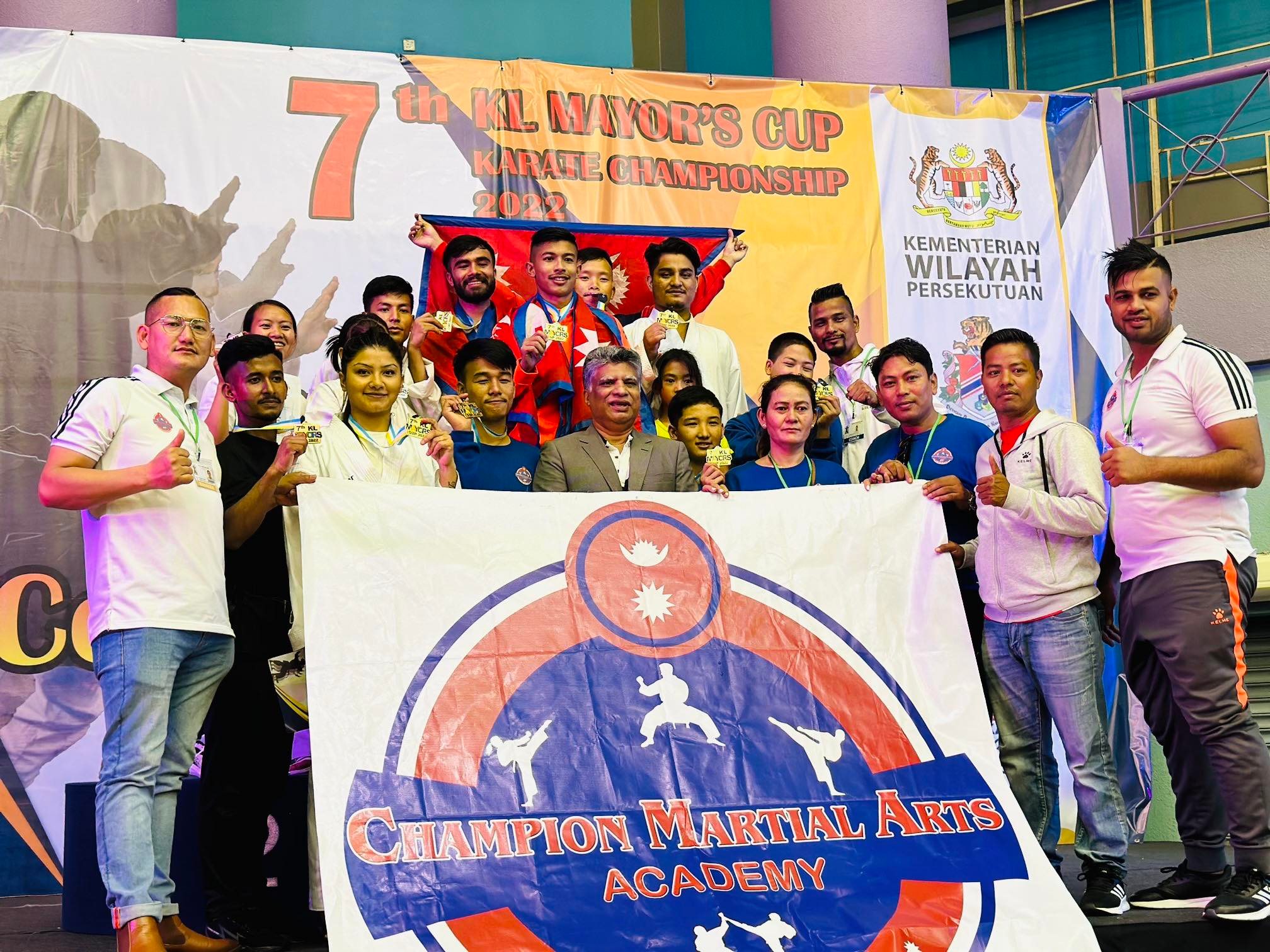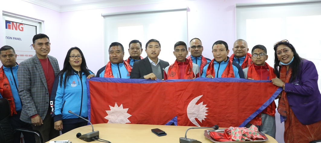 काठमाडौं (हाम्रो खेलकुद) – मलेसियाको क्वालालम्पुरमा आयोजना हुने सातौ केएल मेयर कप २०२२ मा सहभागिता जनाउन नेपालको च्याम्पियन मार्सल आर्ट्सको कराते टोली त्यसतर्फ प्रस्थान गरेको छ । १५ खेलाडीसहित २१ सदस्यीय टोली बुधबार त्यसतर्फ प्रस्थान गरेको हो । सातौ केएल मेयर कप २०२२ क्वालालम्पुरस्थित टिटिवाना इन्डोर स्टेडियमा २ देखि ४ डिसेम्वरसम्म हुनेछ । खेलाडीमा पुरुषतर्फ […]