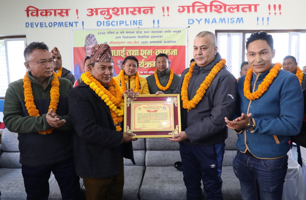 काठमाडौं (हाम्रो खेलकुद) – जिल्ला प्रमुख डोजो, ललितपुर, लगनखेलले गत मंसिर ४ गते सम्पन्न आम निर्वाचनको प्रदेश सांसद विजयी भएका मिनकृष्ण महर्जनलाई शनिबार बधाई तथा शुभकामना प्रदान गरेको छ । राष्ट्रिय खेलकुद परिषद (राखेप) का पूर्व कोषाध्यक्षसमेत रहेका महर्जन डोजोका संरक्षक एवम् संस्थापक हुन् । आयोजक डोजो र नेपाल राष्ट्रिय तथा अन्तर्राष्ट्रिय खेलाडी संघका अध्यक्ष […]
