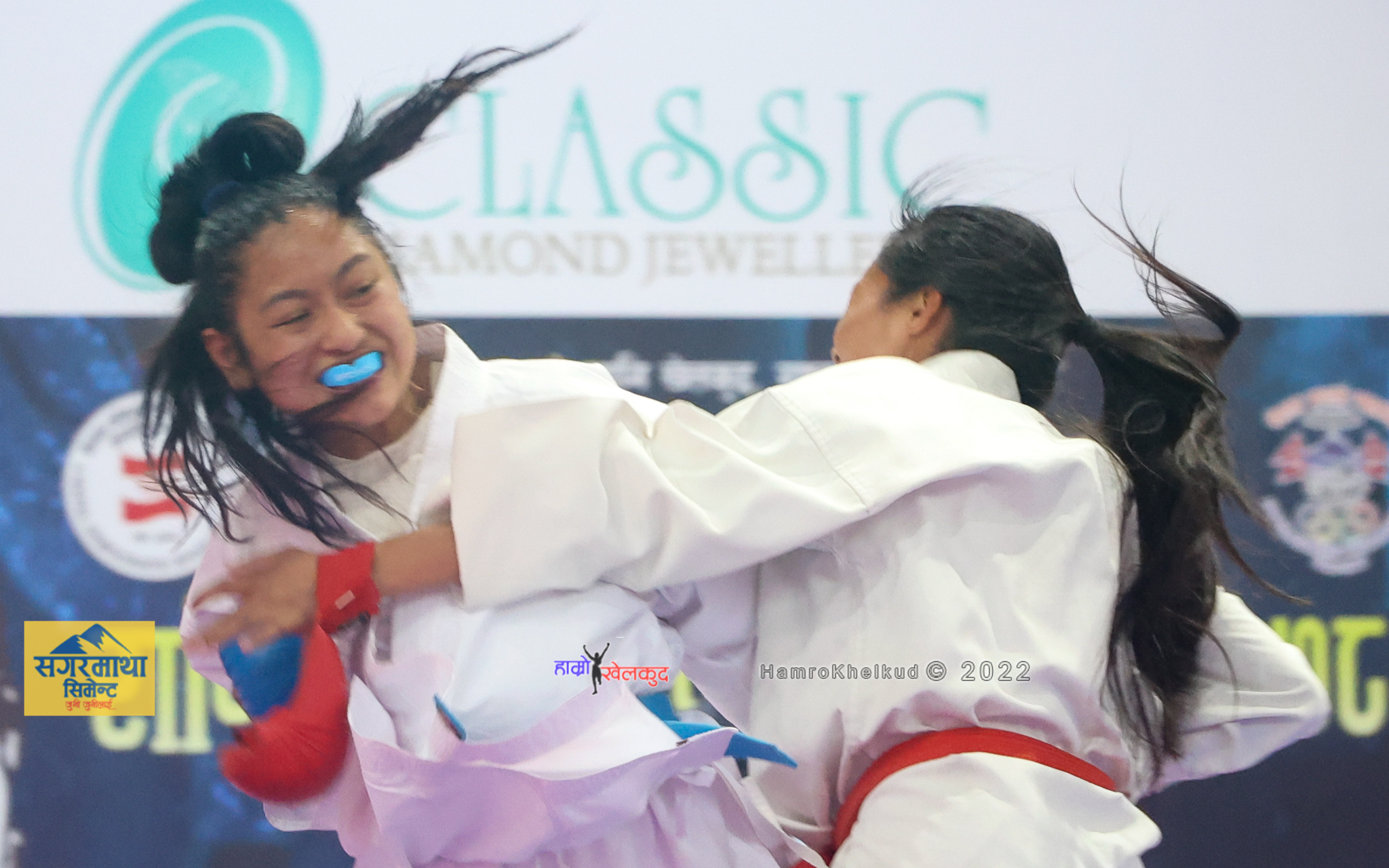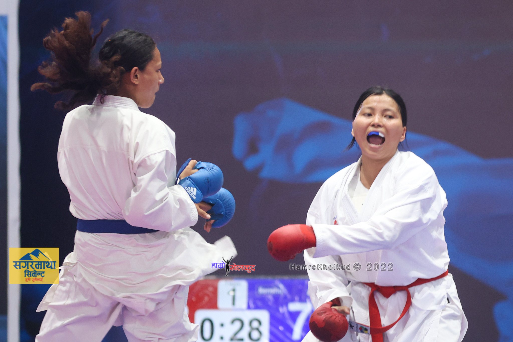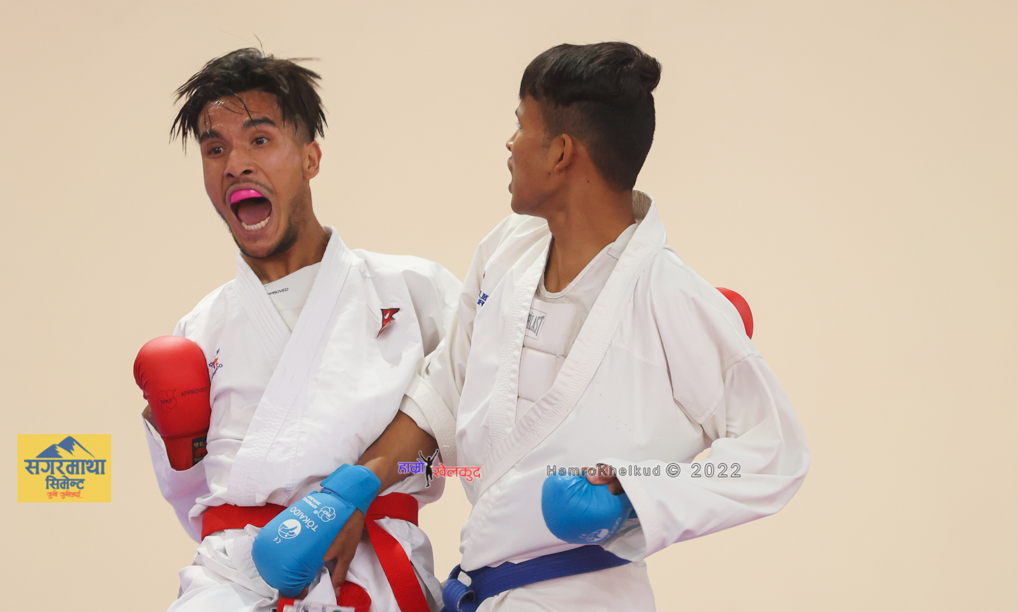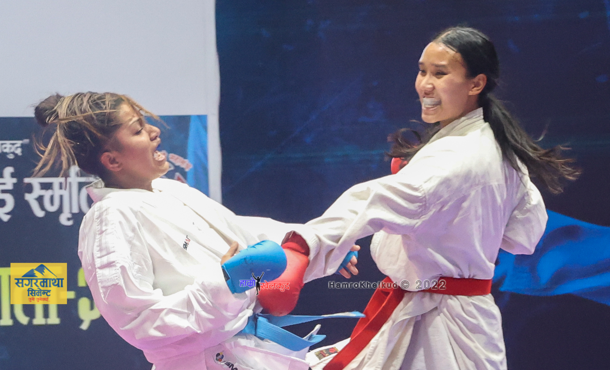 काठमाडौं (हाम्रो खेलकुद)– १३ औं दक्षिण एसियाली खेलकुद (साग) की कास्य पदक विजेता एपिएफकी एस्तर राई र त्रिभुवन आर्मी क्लबकी शान्ता श्रेष्ठबीच महिला ६१ केजी तौल समूह कुमुतेको स्वर्ण पदकका लागि भिड्ने भएका छन् । ललितपुर सातदोबाटोस्थित कराते हलमा जारी प्रतियोगिताको तेस्रो तथा अन्तिम दिन शनिबार सेमिफाइनलमा एस्तरले बागमती प्रदेशकी रमिता माझीलाई १५–७ र शान्ताले […]