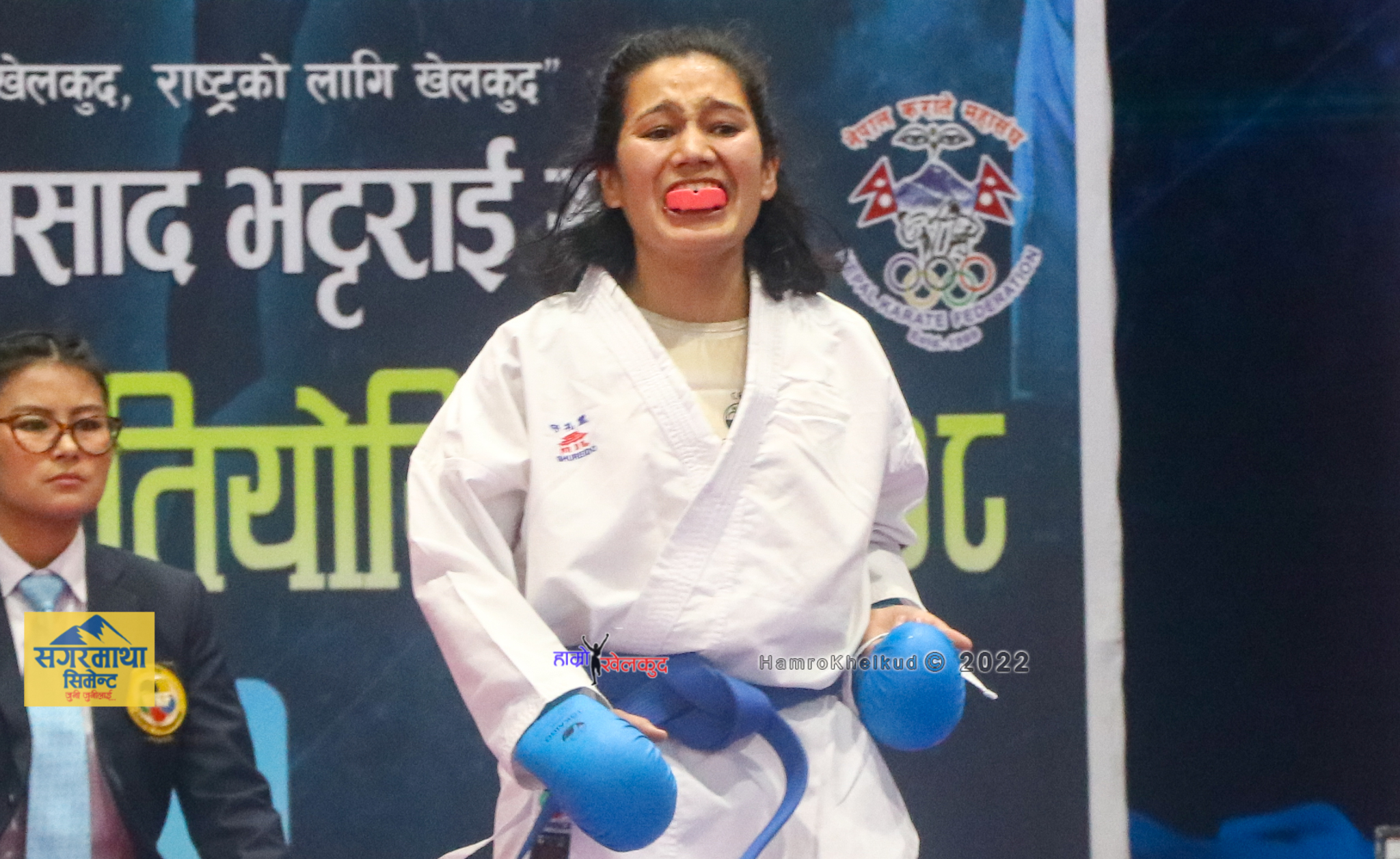 काठमाडौं (हाम्रो खेलकुद) – १३ औं दक्षिण एसियाली खेलकुद (साग) की स्वर्ण पदक विजेता एपिएफकी अनुपमा मगरले प्रथम कृष्णप्रसाद भट्टराई स्मृति राष्ट्रिय कराते प्रतियोगिताको महिला ६८ केजी माथिको तौल समूहमा स्वर्ण पदक जितेकी छन् । ललितपुर सातदोबाटोस्थित कराते हालमा जारी प्रतियोगिताको दोस्रो दिन शुक्रबार त्रिभुवन आर्मी क्लबको सनी तामाङलाई १०–६ ले हराउँदै च्याम्पियन बनेकी थिइन् […]