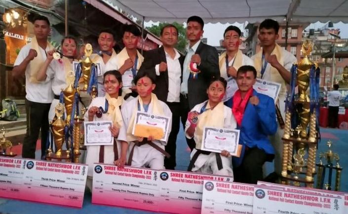 काठमाडौं (हाम्रो खेलकुद) – लैनचौर डोजोका रेहान जाभेद र देउराली डोजोकी कञ्चन नेपालीले पाँचौं जुनियर खुला कराते तथा किक बक्सिङ प्रतियोगितामा शुक्रबार स्वर्ण जितेका छन् । एकल काताको पुरुषमा रेहान र महिलामा कञ्चन पहिलो भएका हुन् । फाइनलमा रेहानले घण्टाघर डोजोका सन्दिप राई तथा कञ्चनले घण्टाघरकै सुवेक्षा आले मगरलाई पछि पारे । नेपाल सितोरियो कराते […]