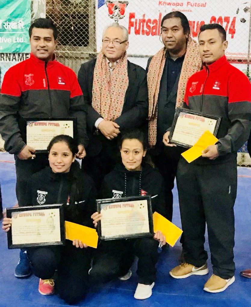 काठमाडौं (हाम्रो खेलकुद)– बर्लिन ओपन अन्तर्राष्ट्रिय करातेमा पदक जित्ने नेपाली खेलाडीलाई खोप फुटबलले नगद पुरस्कारसहित सम्मान गरेको छ । फुटबल लिगका दौरान मंगलबार पदक विजेता खेलाडीलाई सम्मान गरियो । गृहमन्त्री रामबहादुर थापाले उनीहरुलाई सम्मान गरेका थिए । सोही कार्यक्रममा राम श्रेष्ठले व्यक्तिगत रुपमा ५/५ हजार रुपैयाँबाट सम्मान गरेका थिए । बर्लिन ओपमा अनु अधिकारी, मलिका […]
