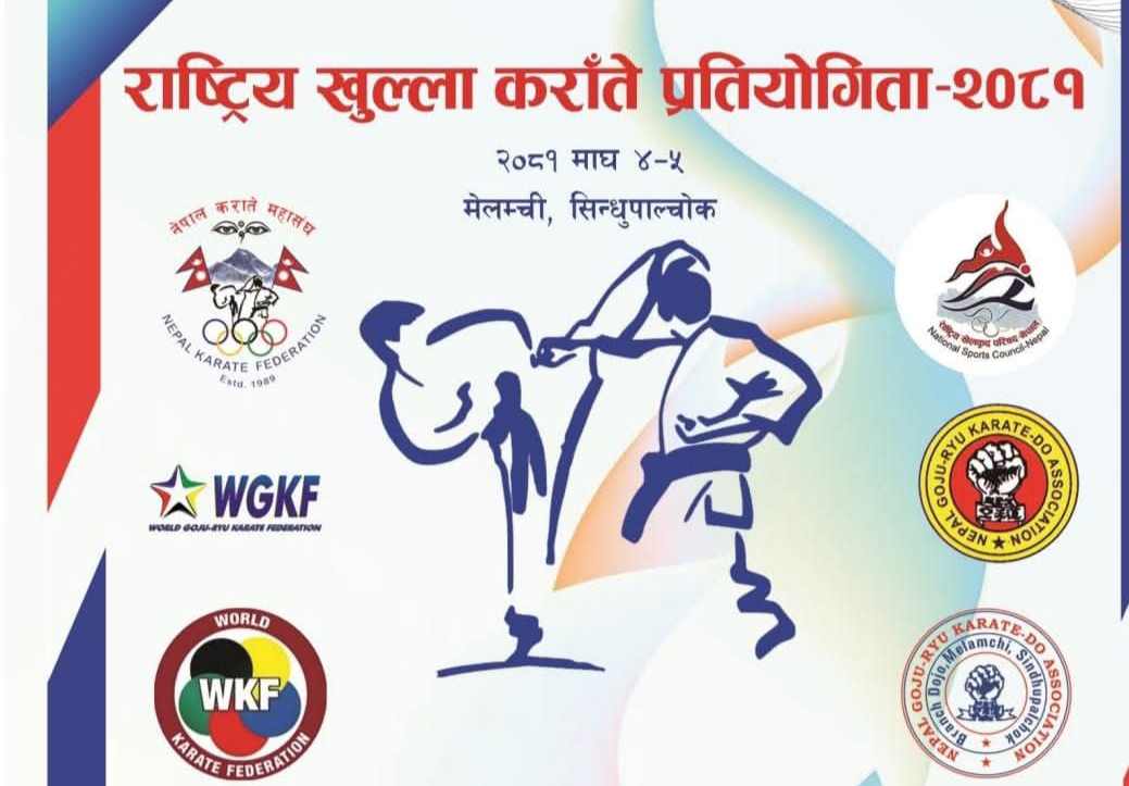 काठमाडौं (हाम्रो खेलकुद)- नेपाल गोजु–रियो कराते–दो संघ शाखा डोजो मेलम्चीको आयोजनामा राष्ट्रिय खुल्ला कराते प्रतियोगिता सुरु भएको छ । बागमती प्रदेशका युवा तथा खेलकुदमन्त्री मीनकृष्ण महर्जनले शुक्रवार प्रतियोगिता उद्घाटन गरे । प्रतियोगितामा ७ प्रदेशबाट महिला १ सय ३० तथा पुरुष १ सय ४० गरि २ सय ७० खेलाडीको सहभागिता रहेको बताइएको छ । प्रतियोगितामा ४० […]