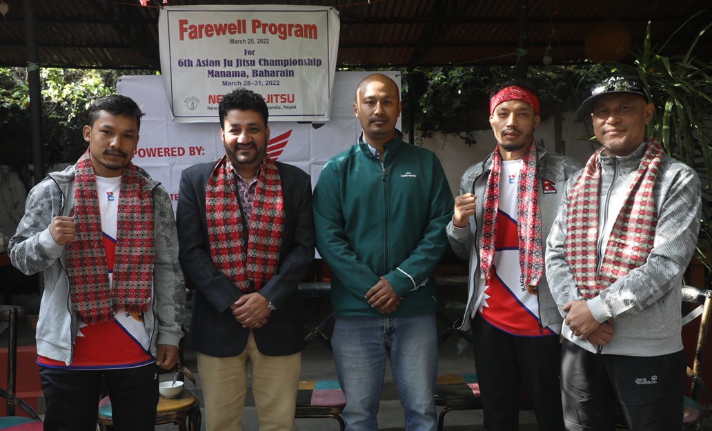 काठमाडौं (हाम्रो खेलकुद) – छैटौं एसियाली जिजित्सु च्याम्पियनसिपमा सहभागी हुन २ खेलाडीसहितको नेपाली जिजित्सु टोली शनिबार बहराइनको मानामा जाने भएको छ । चैत १४ देखि १७ गतेसम्म हुने प्रतियोगिताको पुरुष ६९ केजीमा कोसिश श्रेष्ठ र ७५ केजीमा सन्तोष खत्रीले नेपालको चुनौती प्रस्तुत गर्ने छन् । जिजित्सुमा नेपालको यो पहिलो अन्तर्राष्ट्रिय सहभागिता जनाइएको छ । टिम […]
