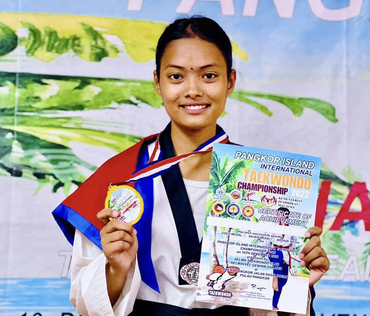 काठमाडौं (हाम्रो खेलकुद) – नेपालका सुष्मा थापा र सोनम गैरेले मलेसियामा आयोजना भएको प्याङकोर आइल्यान्ड अन्तर्राष्ट्रिय तेक्वान्दो प्रतियोगितामा स्वर्ण पदक जितेका छन् । मलेसियाको प्याङकोर आइल्यान्डमा भएको प्रतियोगितामा सुष्माले महिलाको ४६ केजीमुनिको तौल समूहमा स्वर्ण पदक जितेकी हुन् । यसैगरी सोनमले पुरुषको ५८ केजीमुनिको तौल समूहमा पहिलो स्थान हात पारेका हुन् । प्रतियोगितामा नेपालले सात […]
