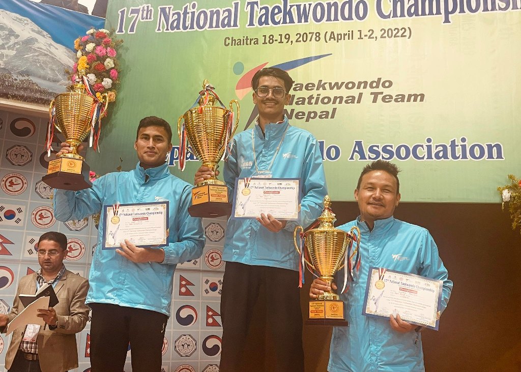 काठमाडौं (हाम्रो खेलकुद) – बाग्मती प्रदेशले १७औं राष्ट्रिय तेक्वान्दो प्रतियोगिताको उपाधि शनिबार जितेको छ । बाग्मतीले ९ स्वर्ण, ४ रजत र ११ कांस्य जित्यो । सातदोबाटोस्थित तेक्वान्दो एकेडेमीको हलमा भएको प्रतियोगितामा ५ स्वर्ण र १ कांस्यसाथ नेपाल प्रहरी दोश्रो भयो । तेश्रो स्थानको लुम्बिनी प्रदेशले ३ स्वर्ण, ४ रजत र ५ कांस्य हात पा¥यो । […]