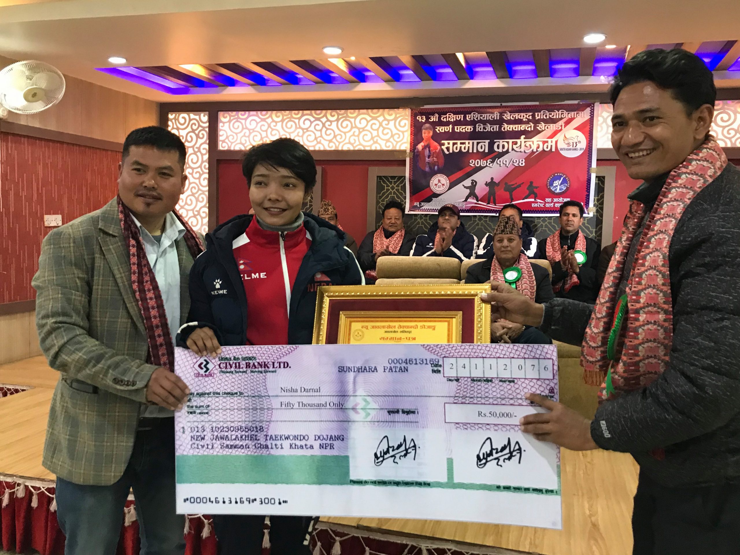 काठमाडौं (हाम्रो खेलकुद) – अमेरिकाको पोर्टल्यान्डमा मुख्यालय रहेको गैर नाफामुलक संस्था अन्तर्राष्ट्रिय खुला मैत्री तेक्वान्दो च्याम्पियनसिप (आईओएफटीसी) ले कोरोना भाइरस (कोभिड– १९) का कारण समस्यामा परेका तेक्वान्दो खेलाडीलाई राहत उपलब्ध गराउन आर्थिक सहयोग प्रदान गरेको छ । काठमाडौं उपत्यकासहित सातै प्रदेशमा समस्यामा परेका तेक्वान्दो खेलाडीको पहिचान गरी राहत उपलब्ध गराउने गरी आईओएफटीसीले ८ लाख रुपैयाँ […]