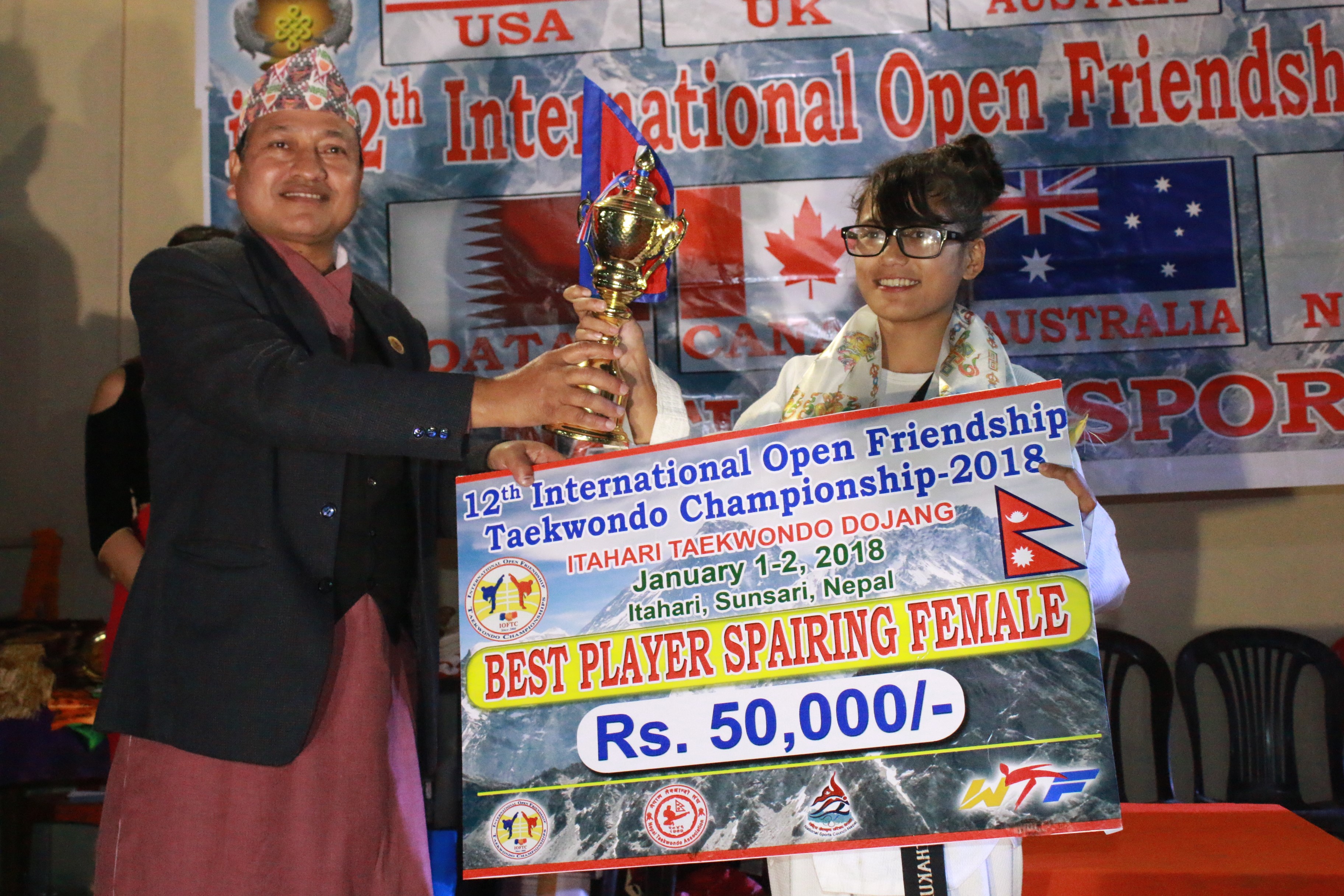 काठमाडौं (हाम्रो खेलकुद) – १२ औं अन्तर्राष्ट्रिय ओपन फ्रेन्डसिप तेक्वान्दो च्याम्पियनसिपमा नेपाल मैत्री तेक्वान्दो दोजाङ च्याम्पियन बनेको छ । मैत्रीले कुल ११ स्वर्ण, ८ रजत र ११ कांस्य पदक हात पार्दै टिम च्याम्पियनसिपलाई आफ्नो पारेको हो । त्यस्तै नेपाल आर्मी १० स्वर्ण, ६ रजत र १२ कांस्यसहित दोस्रो स्थानमा रह्यो भने नेपाल एपिएफ ८ स्वर्ण, […]