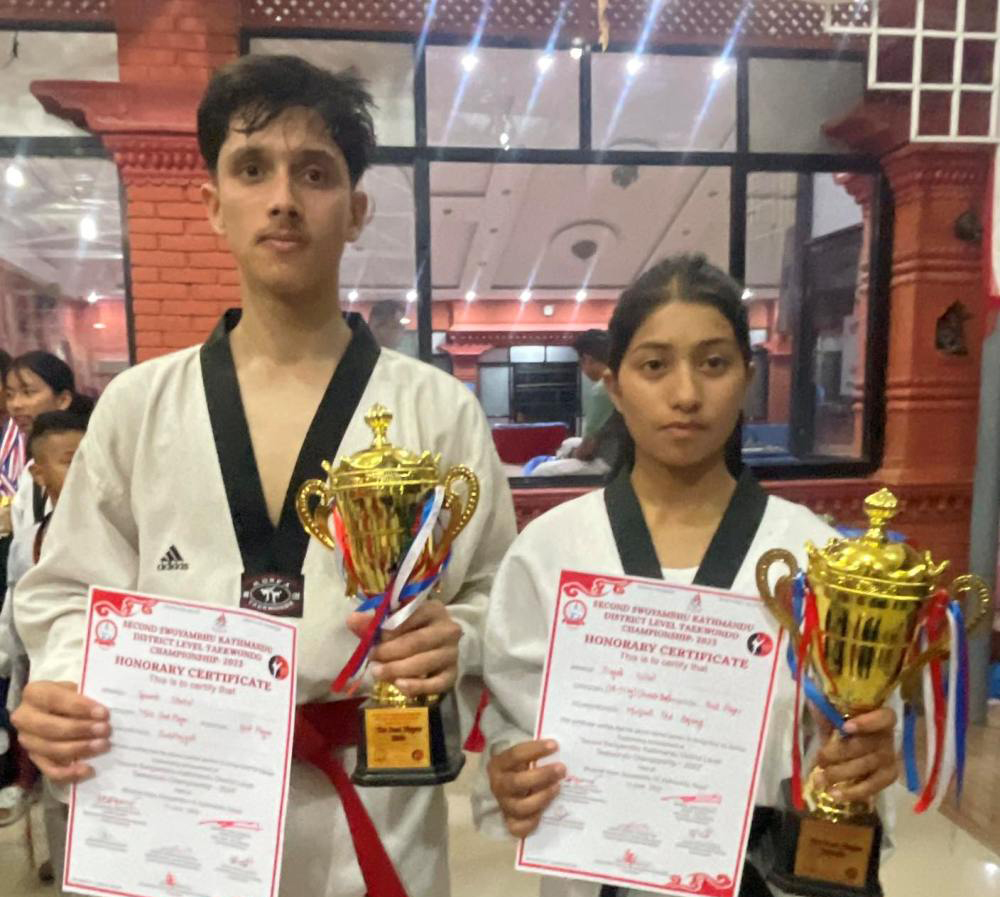 काठमाडौं (हाम्रो खेलकुद) – अमेरिका भ्रमणमा रहेका ओलम्पियन दीपक विष्ट र १३ औं दक्षिण एसियाली खेलकुद (साग) की दोहोरो स्वर्ण पदक विजेता आयशा शाक्य सम्मानित भएका छन् । सुदूर पश्चिम समाज न्यूयोर्कले मंगलबार तेक्वान्दो खेलमार्फत सुदूरपश्चिम र देशको अन्तर्राष्ट्रिय स्तरमा प्रतिष्ठा बढाएकोमा सम्मान गरिएको बताइएको छ । उनीहरलाई कदर पत्रसहित सम्मान गरिएको छ । विष्ट […]