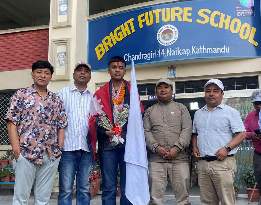 काठमाडौं (हाम्रो खेलकुद) – तेक्वान्दो खेलाडी उज्जवल वाग्ले आईएसएफ वल्र्ड स्कुल तेक्वान्दो च्याम्पियनसिपमा सहभागी हुन शनिबार मेक्सिको प्रस्थान गरेका छन् । नैकापस्थित ब्राइट फ्युचर माविमा कक्षा १० मा अध्ययनरत उज्ज्वलले पुरुष ६८ केजीमाथि तौलसमूहमा प्रतिस्पर्धा गर्ने छन् । छ वर्षदेखि तेक्वान्दोमा लागेका उज्ज्वलको यो पहिलो अन्तर्राष्ट्रिय प्रतियोगिता हो । घरेलु प्रतियोगितामा उज्ज्वलले १ रजत र […]