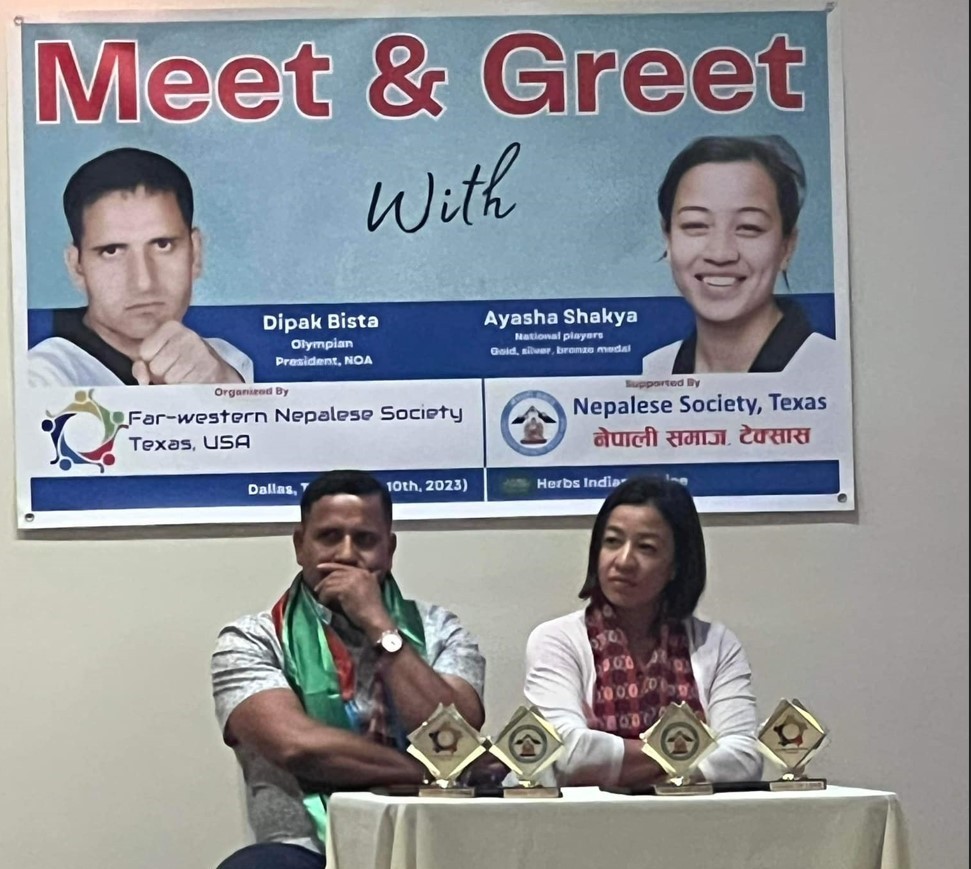 टेक्सस/अमेरिका (हाम्रो खेलकुद)- नेपाली समाज टेक्सस र सुदुर पश्चिम नेपाली समाज, टेक्ससले एसियन खेलकुदमा दुई कास्य पदक तथा साग खेलकुदमा चार स्वर्णपदक विजेता ओलम्पियन दीपक विष्ट र एसियन खेलकुदमा एक कास्य पदक तथा साग खेलकुदमा तीन स्वर्ण पदक विजेता आयशा शाक्यलाई एक कार्यक्रममा बीच सम्मान गरेको छ । अमेरिका भ्रमणमा रहेका विष्ट र शाक्य सहित […]