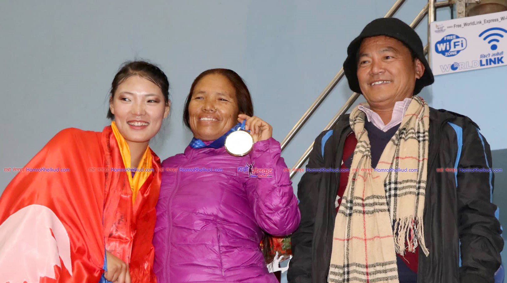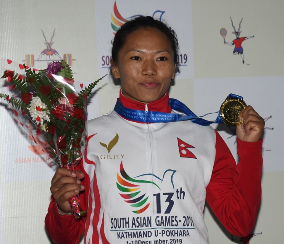 काठमाडौं (हाम्रो खेलकुद) – उसुकी निमा घर्तीमगरले १३ औं दक्षिण एसियाली खेलकुद (साग) को थाउलो अन्तर्गत नान्दौमा स्वर्ण पदक जितेकी छिन् । यसअघि भारतमा भएको १२ औं संस्करणमा समेत स्वर्ण जितेकी निमा लगातार दुई संस्करणमा स्वर्ण जित्ने उसुकी पहिलो खेलाडी बनेकी छिन् । लगनखेलस्थित आर्मी कभर्ड हलमा बिहीबार निमाले बंगलादेशकी मोर्जिना अख्तरलाई पछि पार्दै स्वर्ण […]