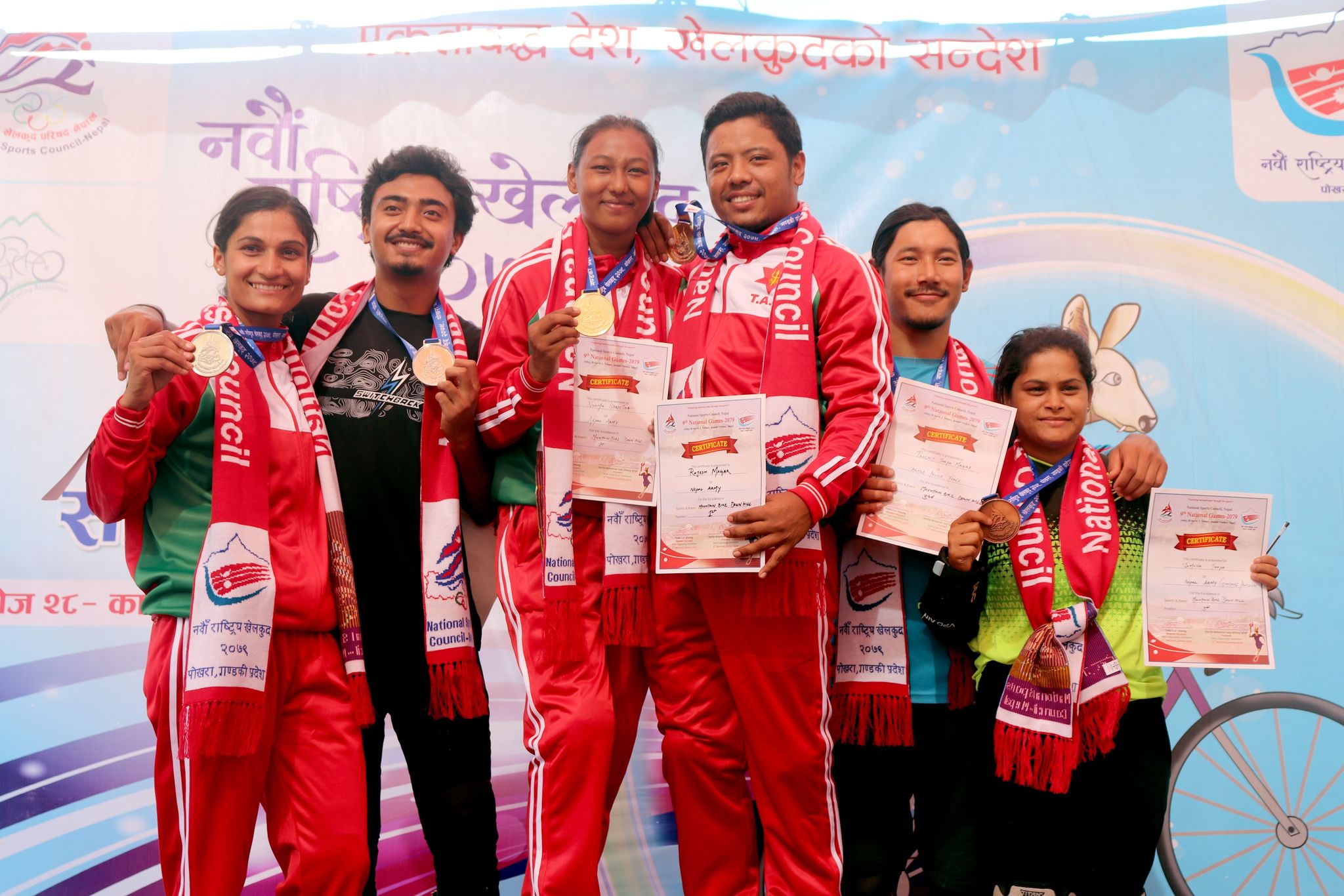 पोखरा (हाम्रो खेलकुद) – गण्डकी प्रदेशमा जारी नवौं राष्ट्रिय खेलकुद प्रतियोगिता अन्तर्गत साइक्लिङको महिला डाउन हिलमा त्रिभुवन आर्मी क्लबकी निश्मा श्रेष्ठले स्वर्ण पदक जितेकी छिन् । पोखराको ड्यामसाइडनजिक रानीबनको ट्रयाकमा शनिबार भएको स्पर्धामा रेश्माले निर्धारित दुरी २ मिनेट २३.५८ सेकेन्डमा पूरा गर्दै स्वर्ण जितेकी हुन् । निश्माले सन् २०१९ मा नेपालमा भएको १३औं दक्षिण एसियाली […]