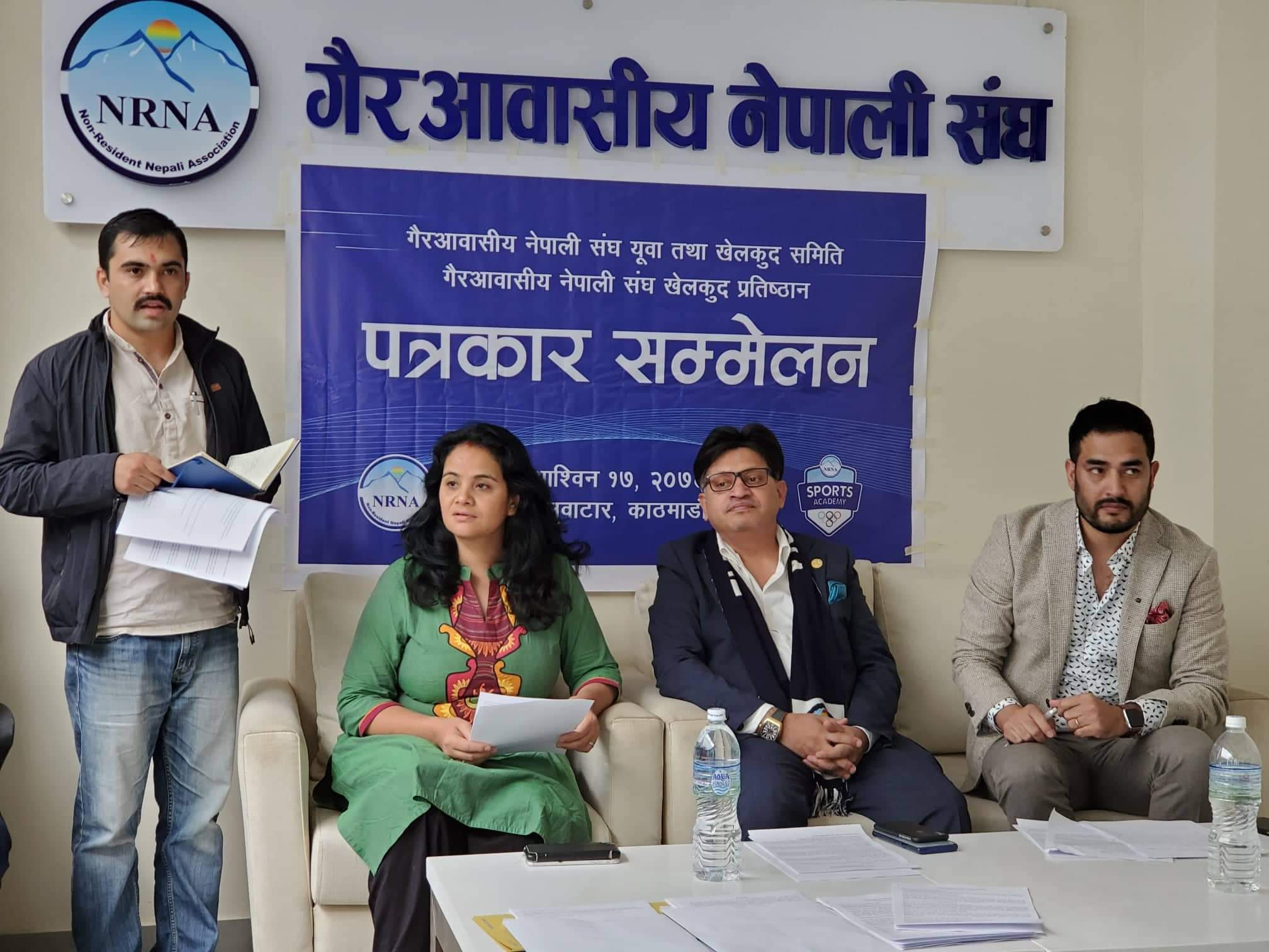 काठमाडौं (हाम्रो खेलकुद)– गैर आवासीय नेपाली संघ नेपाल एनआरएनएले एनआरएनए स्पोट्र्स एकेडेमी गठन गरेको छ । शुक्रबार आयोजित पत्रकार सम्मेलनमा एनआरएनएका अध्यक्ष भवन भट्ट र एनआरएनए अन्तर्राष्ट्रिय समन्वय परिषद आइसीसीका युवा संयोजक सुदन थापाले संयुक्त रुपमा एकेडेमीको लोगो सार्वजनिक गरे। लोगोमा एनआरएनको ६ वटा क्षेत्रको प्रतिनिधित्व हुनेगरी ६ वटा ओलम्पिक रिंग राखिएको छ । एनआरएनए […]