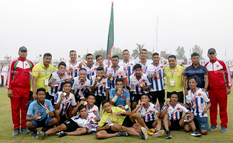 नेपालगन्ज (हाम्रो खेलकुद) – आठौं राष्ट्रिय खेलकुदअन्तरगतको पुरुष फुटबलको स्वर्ण विभागीय क्लब त्रिभुवन आर्मी क्लबले जितेको छ । साविकको उपविजेता समेत रहेको आर्मीले नेपालगन्ज रंगशालामा बुधबार भएको स्वर्ण भिडन्तमा अर्काे विभागीय टोली नेपाल पुलिस क्लबलाई १–० ले पराजित गर्दै स्वर्ण जितेको हो । दुई वर्षअघि धरानस्थित एन्फा टेक्निकल सेन्टरमा भएको स्वर्ण भिडन्तमा आर्मी एपीएफसँग २–० […]