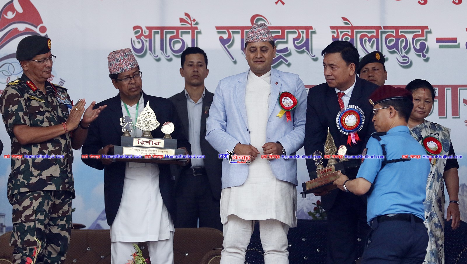 नेपालगन्ज (हाम्रो खेलकुद)– भव्य उदघाटन र सफल आयोजनाका कारण आठौं राष्ट्रिय खेलकुदले चर्चा पाएपनि समापन भने खल्लो भएको छ । राष्ट्रिय खेलकुद परिषद (राखेप) ले गम्भिर त्रुटीका कारण पदक तालिकामा फरक पर्दा पुरस्कार वितरण समारोहमा गल्ति भएको हो । जसका कारण आठौं च्याम्पियन टोली उहि घोषणा हुँदा दोस्रो र तेस्रो हुने टोली घोषणा भने फरक […]