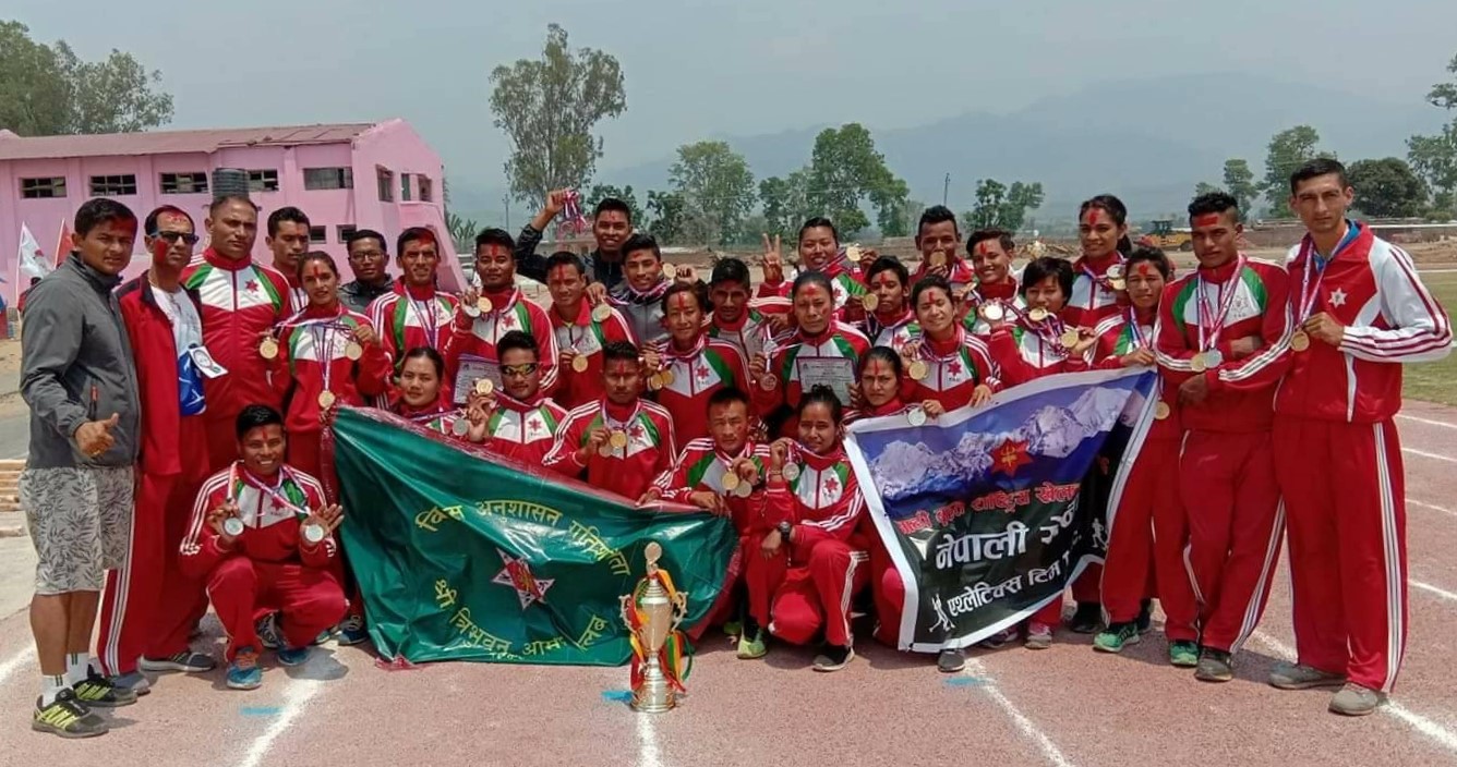नेपालगन्ज (हाम्रो खेलकुद) – त्रिभुवन आर्मी क्लब २१ स्वर्ण, १२ रजत र ८ कास्य पदकसहित आठौं राष्ट्रिय खेलकुदअन्तर्गत एथ्लेटिक्सको च्याम्पियन बनेको छ । एपिएफ टिम दोस्रो र नेपाल पुलिस क्लब तेस्रो भएका छन् । दुई वर्षअघि पूर्वाञ्चलमा भएको सातौं राष्ट्रियमा २२ स्वर्ण पदक जितेको थियो । दाङको तुलसीपुरस्थित बेलझुण्डी रंगशालामा संचालित प्रतियोगितामा ८ स्वर्ण, ६ […]