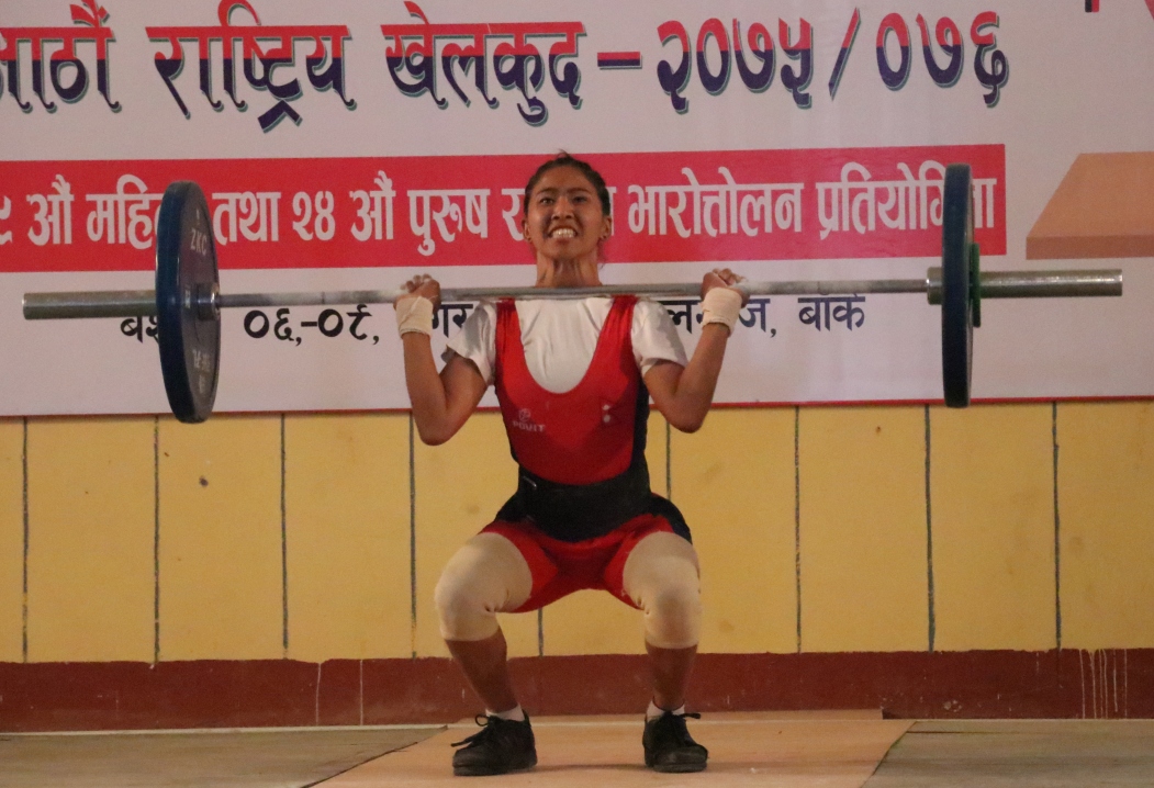 नेपालगन्ज (हाम्रो खेलकुद) – आठौ राष्ट्रिय खेलकुद अन्तरगत जारी आठौ महिला तथा २४ औ पुरुष राष्ट्रिय भारोत्तोलन प्रतियोगिता अन्तरगत शनीबार महिला ५५ किलो तौल समुहमा नेपाल प्रहरीकी देवी चौधरीले तीन राष्ट्रिय कीर्तिमान कायम गरेकी छिन् । उनले स्न्याचमा ६५, क्लीन एन्ड जर्कमा ८१ तथा कुल १४८ किलो भार बहन गर्दै तीन वटै राष्ट्रिय कीर्तिमान कायम […]
