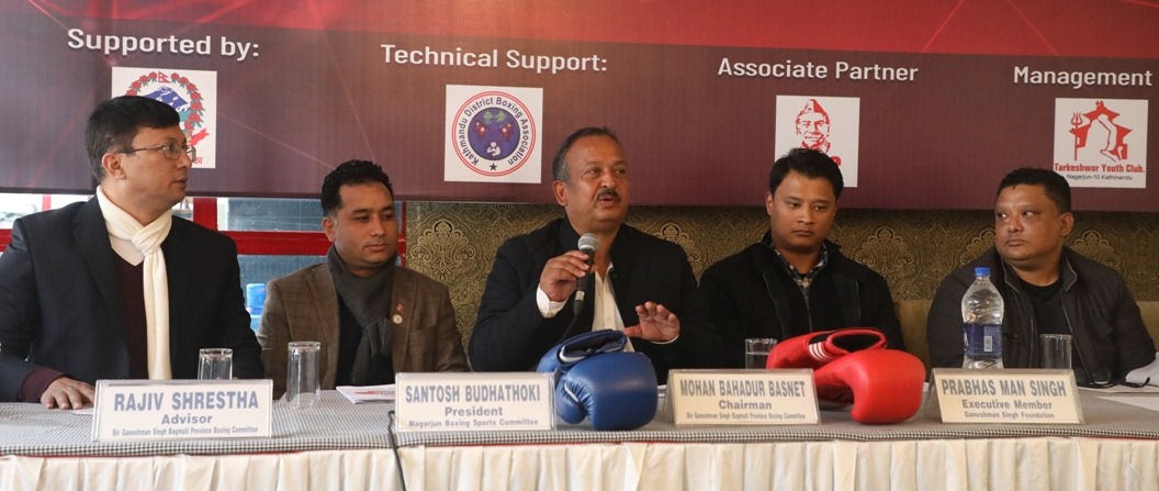 काठमाडौं (हाम्रो खेलकुद)– नागार्जुन नगरपालिकाको सहयोगमा नागार्जुन बक्सिङ खेलकुद समितिले अर्को महिना काठमाडौंमा वीर गणेशमान सिंह स्मृति बागमती प्रदेश स्तरीय बक्सिङ प्रतियोगिता आयोजना गर्ने भएको छ । महिला र पुरुषमा गरि १४ तौल समूह च्याम्पियनसिपमा राखिएको शुक्रबार आयोजित पत्रकार सम्मेलनमा नागार्जुनका मेयर समेत रहेका प्रतियोगिता संयोजक मोहनबहादुर बस्नतेले जानकारी दिए । प्रजातान्त्रिक आन्दोलनका सर्वमान्य नेता […]