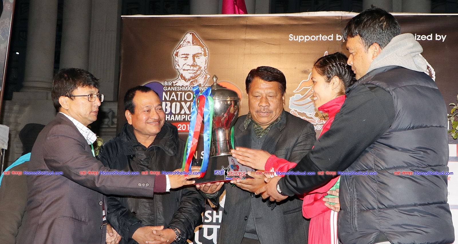 काठमाडौं (हाम्रो खेलकुद) – त्रिभुवन आर्मी क्लबको महिला टोलीले वीर गणेशमान राष्ट्रिय बक्सिङ प्रतियोगितामा टिम च्याम्पियनको उपाधि जितेको छ । आर्मीले ६ तौल समूहमा तीन स्वर्ण, २ रजत र १ कांस्यसहित महिलातर्फ दबदबा कायम गर्दै उपाधि जितेको हो । शुक्रबार वसन्तपुर डबलीमा भएको फाइनल खेलमा आर्मीका लागि ६०-६४ केजी तौल समूहमा पुनम रावल, ५४-५७ केजीमा […]