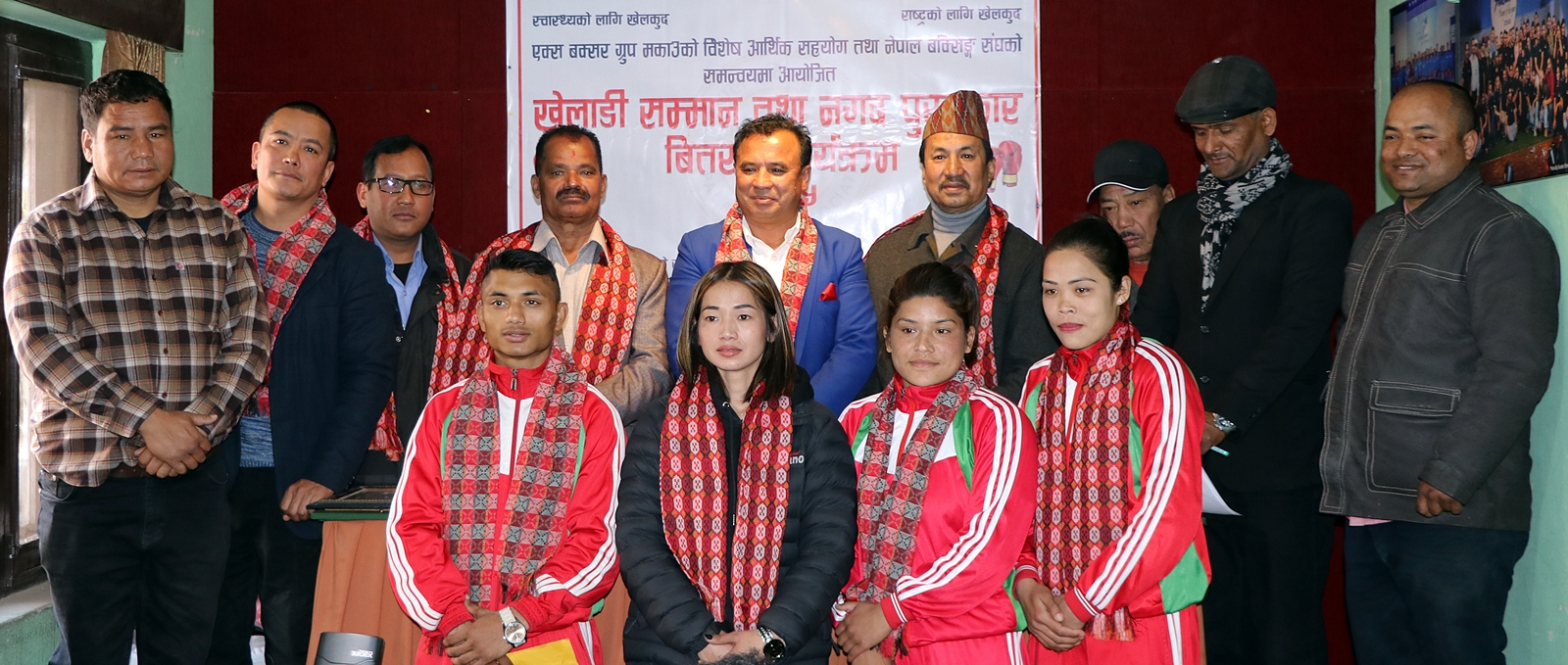 काठमाडौं (हाम्रो खेलकुद) – एक्स बक्सर क्लब मकाउले नेपाल बक्सिङ संघको समन्वयमा अन्तर्राष्ट्रिय तथा राष्ट्रिय प्रतियोगितामा पलब जित्न सफल चार बक्सरलाई सोमबार नगदसहित सम्मानित गरेको छ । एक्स बक्सर समूहको आर्थिक सहयोगमा संघले पत्रकार सम्मेलन आयोजना गर्दै सोमबार पदक जित्न सफल चार खेलाडीलाई जनही २५–२५ हजार रूपैया नगदसहित सम्मानित गरेको हो । सम्मानित हुनेमा आर्मीका […]