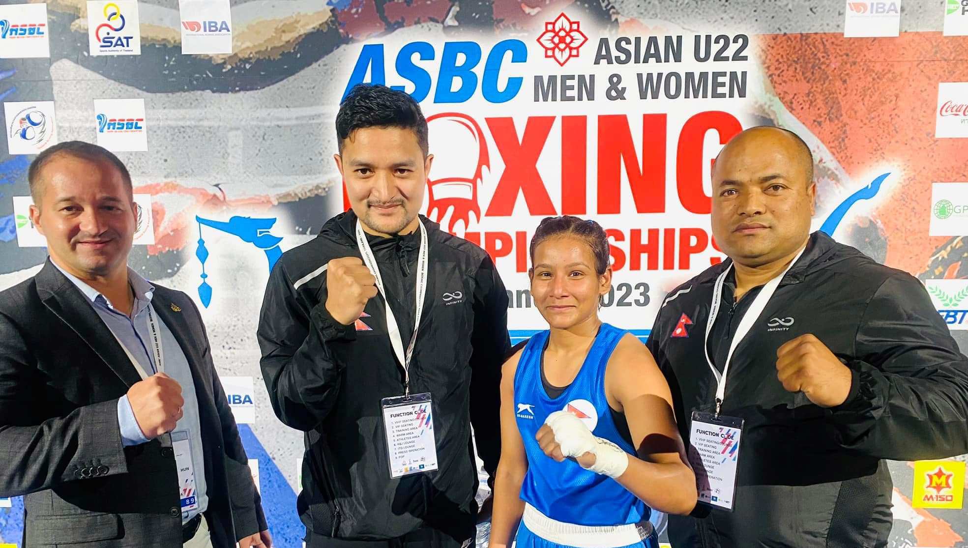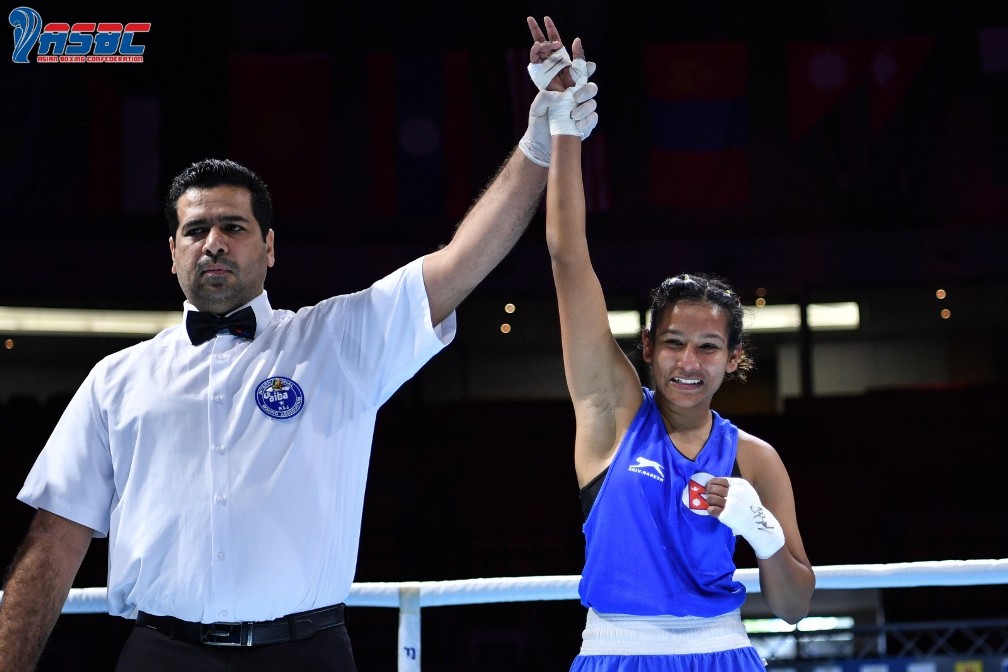 काठमाडौं (हाम्रो खेलकुद)– थाइल्यान्डको बैंककमा जारी एएसबिसी यु–२२ बक्सिङ च्याम्पियनसिपको दोस्रो दिन बिहीबार नेपालका मुक्केबाज सुष्मा तामाङ र हेमा राईले जित हासिल गरेका छन् । महिला ४८ केजी तौलसमूहमा सुष्माले भियतनामकी क्यूनहानलाई ५–० अंकको आधारमा पराजित गरिन् । हेमाले ५७ केजी तौलसमूहमा सिगांपुरकी चौउजीमिन बेर्नेसलाई आरएसी आईको आधारमा दोस्रो राउण्डमा जित हासिल गरिन् । सुष्मा […]