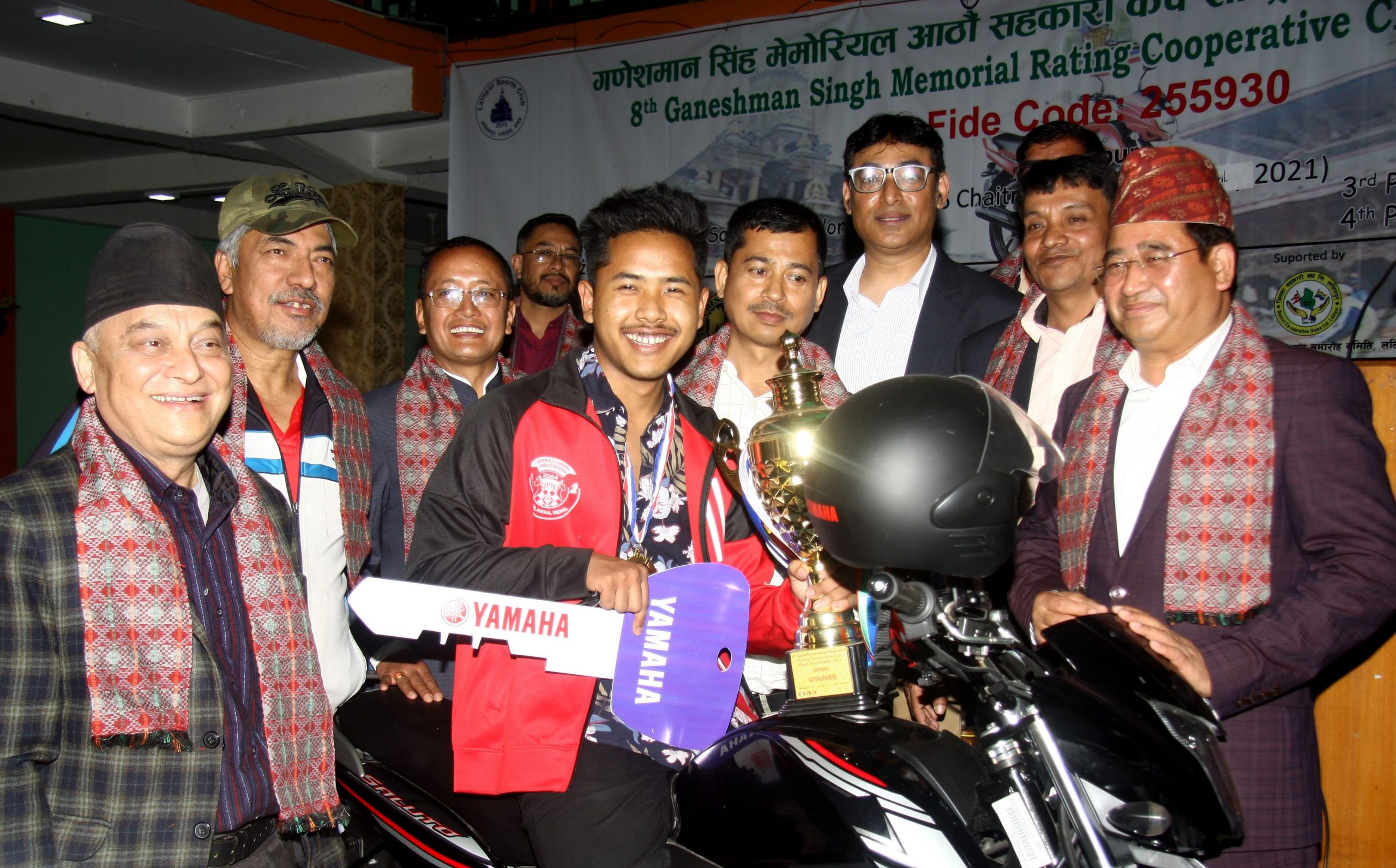 ललितपुर (हाम्रो खेलकुद) – दोलखा चेसका खेलाडी मिलन लामाले ६४ औं सहकारी दिवसको उपलक्ष्यमा आयोजित गणेशमान सिंहस्मृति आठौं सहकारी कप फिडे रेटिङ बुद्धिचाल प्रतियोगिताको उपाधि जितेका छन् । मिलनले बिहीबार भएको फाइनलमा नोभा साकोस ललितपुरका सुदीप तामाङ दुवैले एक एक खेल जितेका थिए । त्यसपछि ३ मिनेट २ सेकेण्डको ब्लिट्ज टाइब्रेकमा मिलनले दुवै खेल जितेर […]